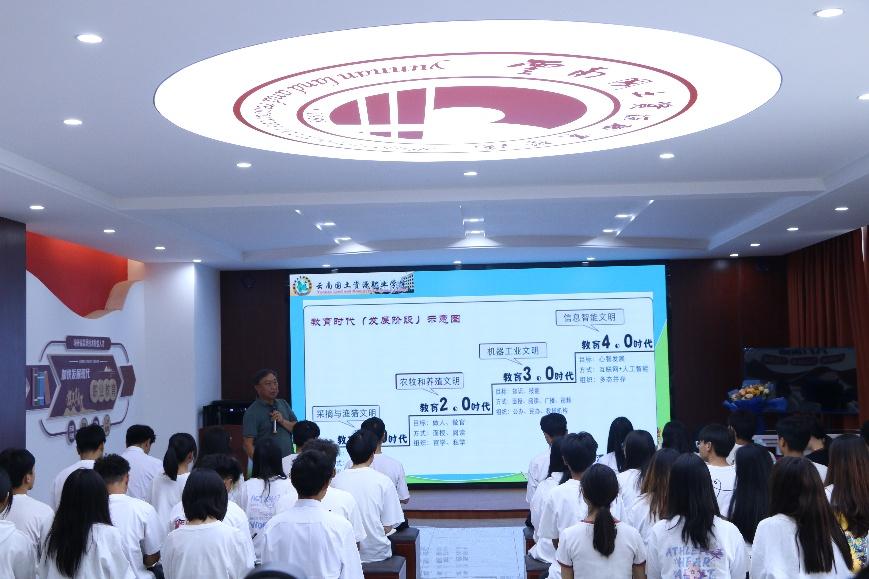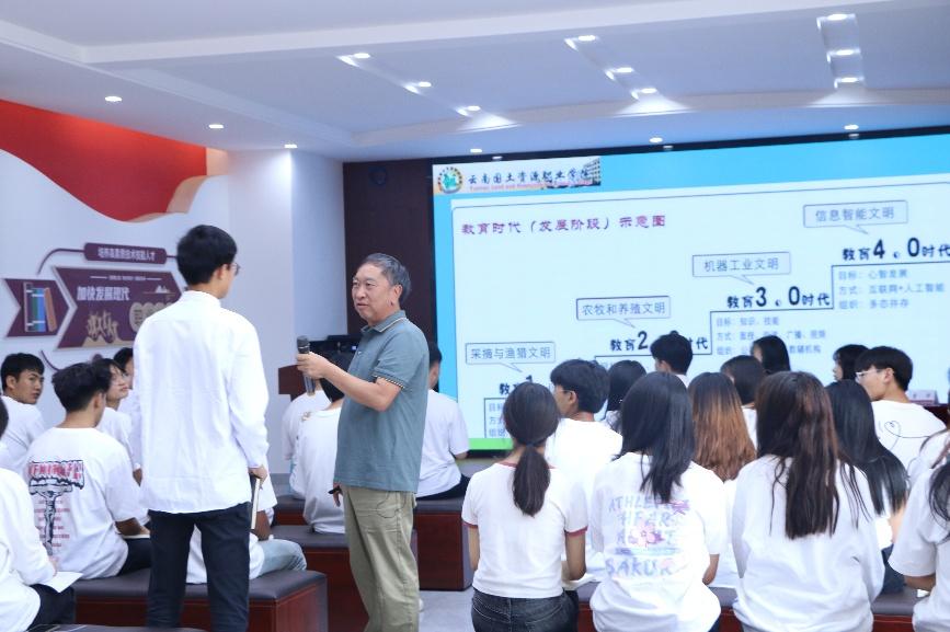 为深入学习贯彻党的二十大精神,充分发挥老干部、老战士、老专家、老教师、老模范“五老”的优势和作用,切实加强学院学生的思想政治教育,2023年6月14日,金年会jinnianhuicom关工委在勘物楼尚能馆开展了以“讲光荣校史 传优良校风”为主题的“五老进校园”活动。此次活动特邀请到云南国土资源职业学院退休老院长李华老师作为主讲人,学院党总支书记苏丽丹、院长张洪,团总支负责人马佳、团学负责人孙嘉蔚老师以及22级学生会干部共同参加了此次活动。