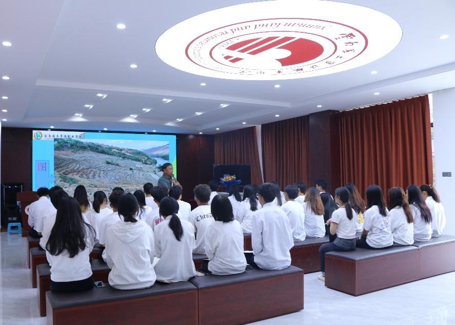 接着,李华老师结合自身工作经历,向大家分析了当下的教育发展,提出了“改变固化思维,扩展认知格局”的观点,强调当下应该积极调整认知,适应飞速发展的社会,做经济建设的侦察兵。他还勉励同学们发扬“特别能战斗,特别能吃苦,特别能忍耐,特别能奉献”的国土四特别精神。