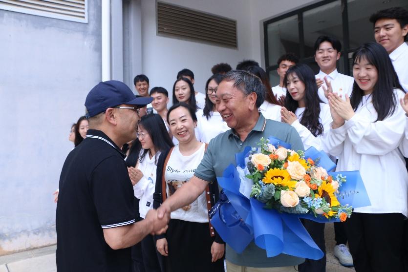 活动上,张洪院长代表学院向李华老师送上鲜花,感谢他对学校发展所做的贡献。