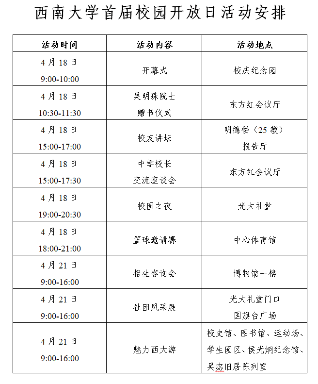 为让广大考生、家长及社会各界人士进一步了解学校良好的育人环境与办学条件、办学特色与师资力量、创新人才培养、大学学习与生活等情况,加强学校与社会的沟通交流,提升社会各界对学校的认知和认同,学校决定于2018年4月18日-21日举办taptap点点官方网站首届“校园开放日”活动。