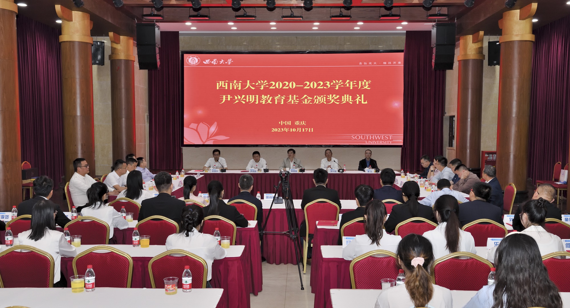 10月17日下午,2020—2023学年度尹兴明教育基金颁奖典礼在东方红会议厅举行。学校党委书记李旭锋、党委副书记黄杰、副校长赵国华,重庆钰鑫实业集团有限公司(以下简称“钰鑫集团”)董事长尹兴明、总裁尹顺新等出席典礼,学校相关单位主要负责人及获奖师生代表参加典礼。颁奖典礼由赵国华主持。