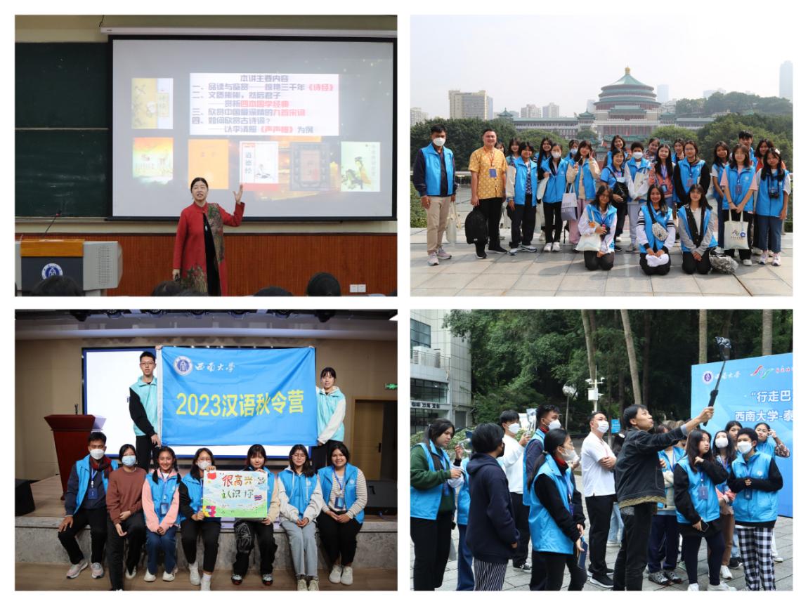 国际合作与交流处、新闻传媒学院负责人出席开营仪式,中泰师生代表参加开营仪式。本次“汉语桥”秋令营以展现中华传统文化为主线,组织了一系列丰富的中华文化学习体验活动,包括中华传统礼仪与视频拍摄创作的教学课程、茶艺文化与巴渝美食的实践体验活动、大足石刻与名家馆藏的考察研学活动等,带领泰国中学生深入理论课堂、文化景点、繁华都市,沉浸式地体验和感知中华传统文化的博大精深与巴渝文化的独特魅力。