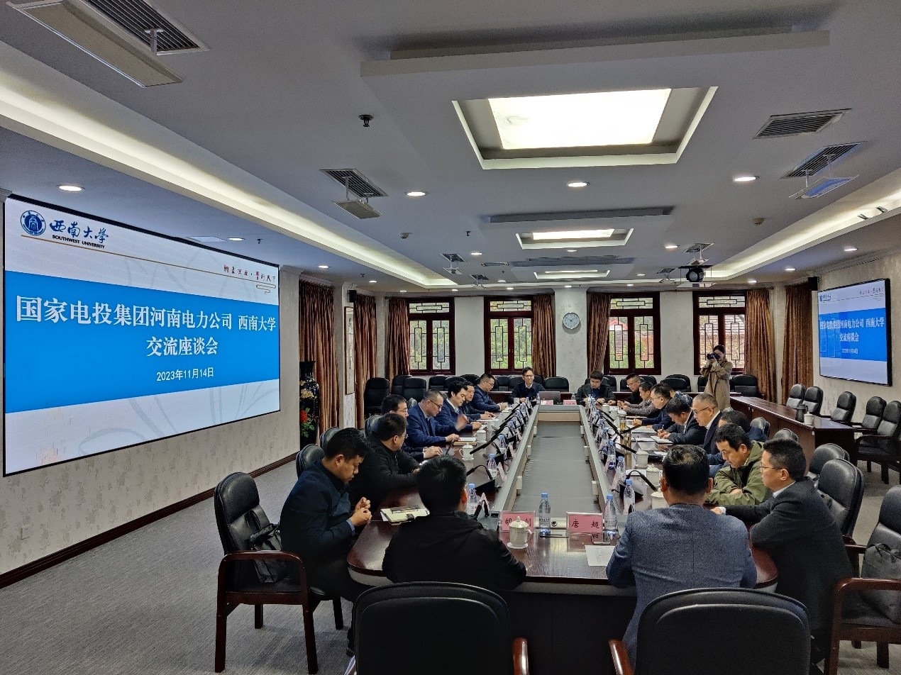 11月14日,国家电投集团河南电力有限公司党委书记、董事长,华中智慧能源研究院院长,农村清洁能源创新中心主任王捍忠一行来校考察交流,商谈合作。校长张卫国出席座谈会,副校长葛信勇主持会议。