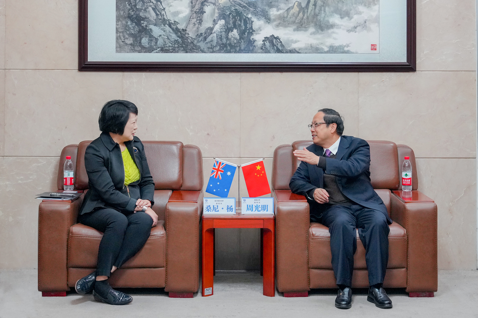 周光明对杨爽一行表示欢迎。他介绍到,学校与澳大利亚五所高校共同开办了1个中外合作办学机构并开展了4个项目,共建8个专业,注册学生人数共计2600余人,这充分体现了学校和澳洲高校合作的广度与深度。他表示,taptap点点官方网站生命科学学院、教育学部以及资源环境学院的专业在全国都排名靠前,特别是化学化工学院的相关专业已经进入了全球排名前1‰,希望两校能在这些领域深耕合作。
