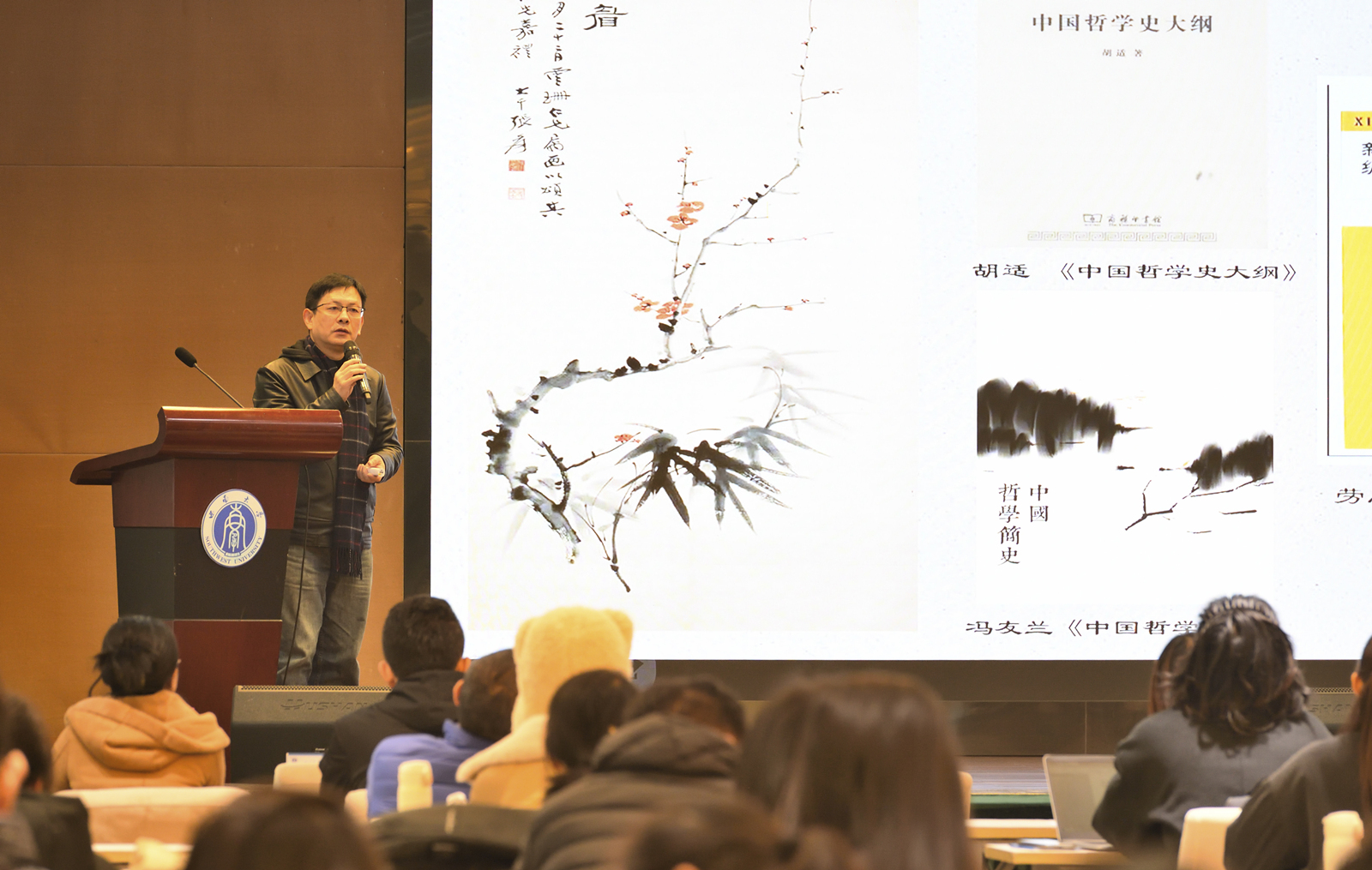 “传中国声音,做中国使者”,来自外国语学院中国故事双语宣讲团的三位同学声情并茂地向在场师生作中国故事主题宣讲。