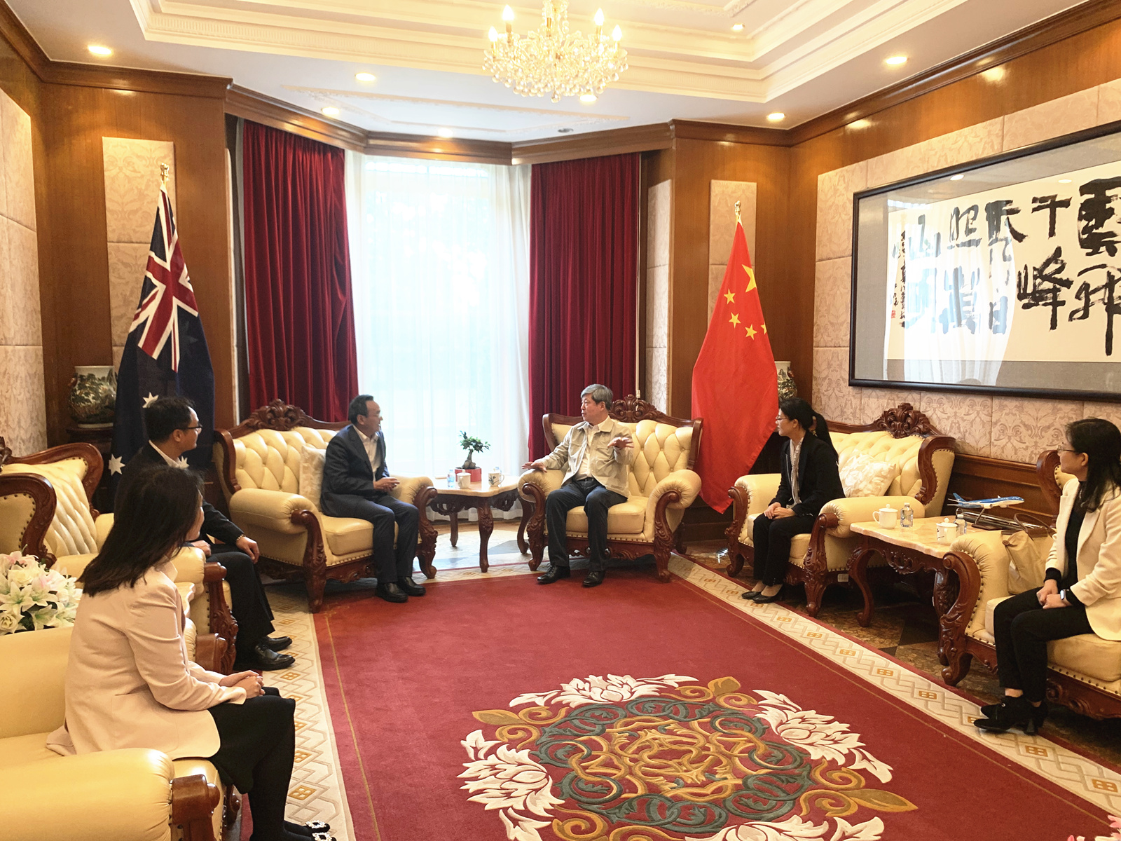 在澳期间,代表团还拜会了中国驻墨尔本总领事馆,与一级巡视员、教育参赞郭春鸣会面,并看望学校在领馆工作的驻外干部李林泽。郭春鸣介绍了当前中澳两国教育合作的整体背景和形势,肯定了学校为推动中澳高等教育合作做出的努力。