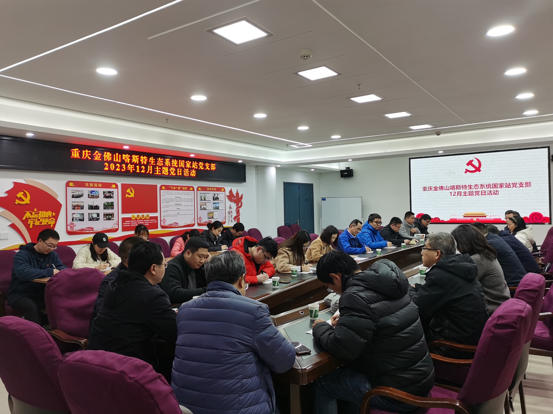 支部书记杨庆媛介绍金佛山国家站党支部的基本情况,传达学习习近平总书记在第十个国家宪法日之际作出的重要指示精神,与会同志集中观看《焦点访谈》专题节目《尊崇宪法精神 厚植法治文化》。会议开展了弘扬科学家精神学习,组织党员同志观看《科学精神 榜样引领》袁道先院士科学家精神短视频。支部全体党员围绕学习内容以及国家站近期重点工作,就如何发挥党支部战斗堡垒作用和党员先锋模范作用进行了交流讨论,现场气氛热烈。支部为党员同志庆祝政治生日,张卫国为他们颁发政治生日贺卡并送上政治生日祝福。