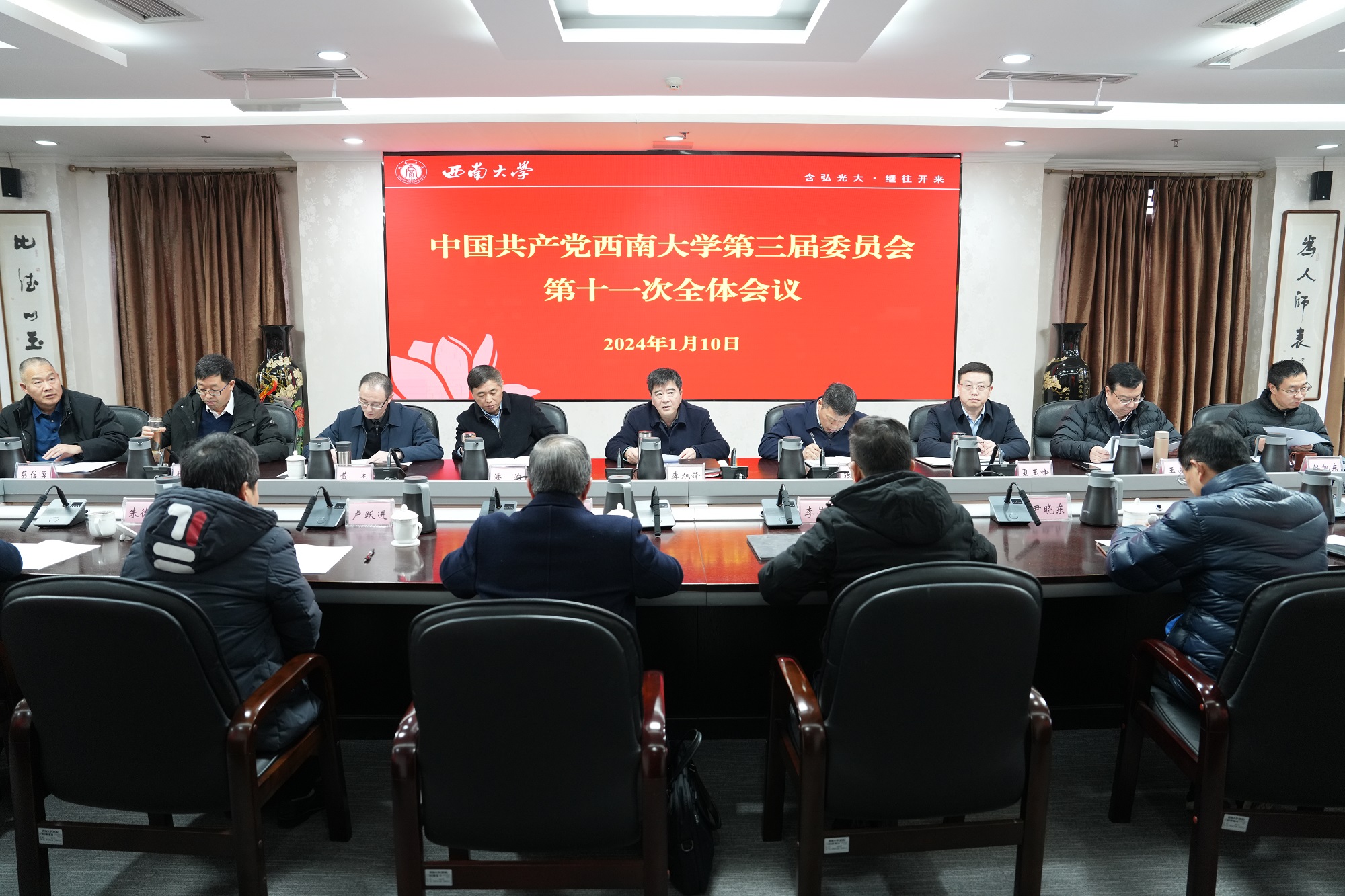 1月10日下午,学校召开中国共产党taptap点点官方网站第三届委员会第十一次全体会议,全体在校校领导、党委委员出席会议。会议传达学习了习近平总书记在二十届中央纪委三次全会上的重要讲话精神等,听取和审议了2023年学校工作报告,讨论了2024年主要工作设想。