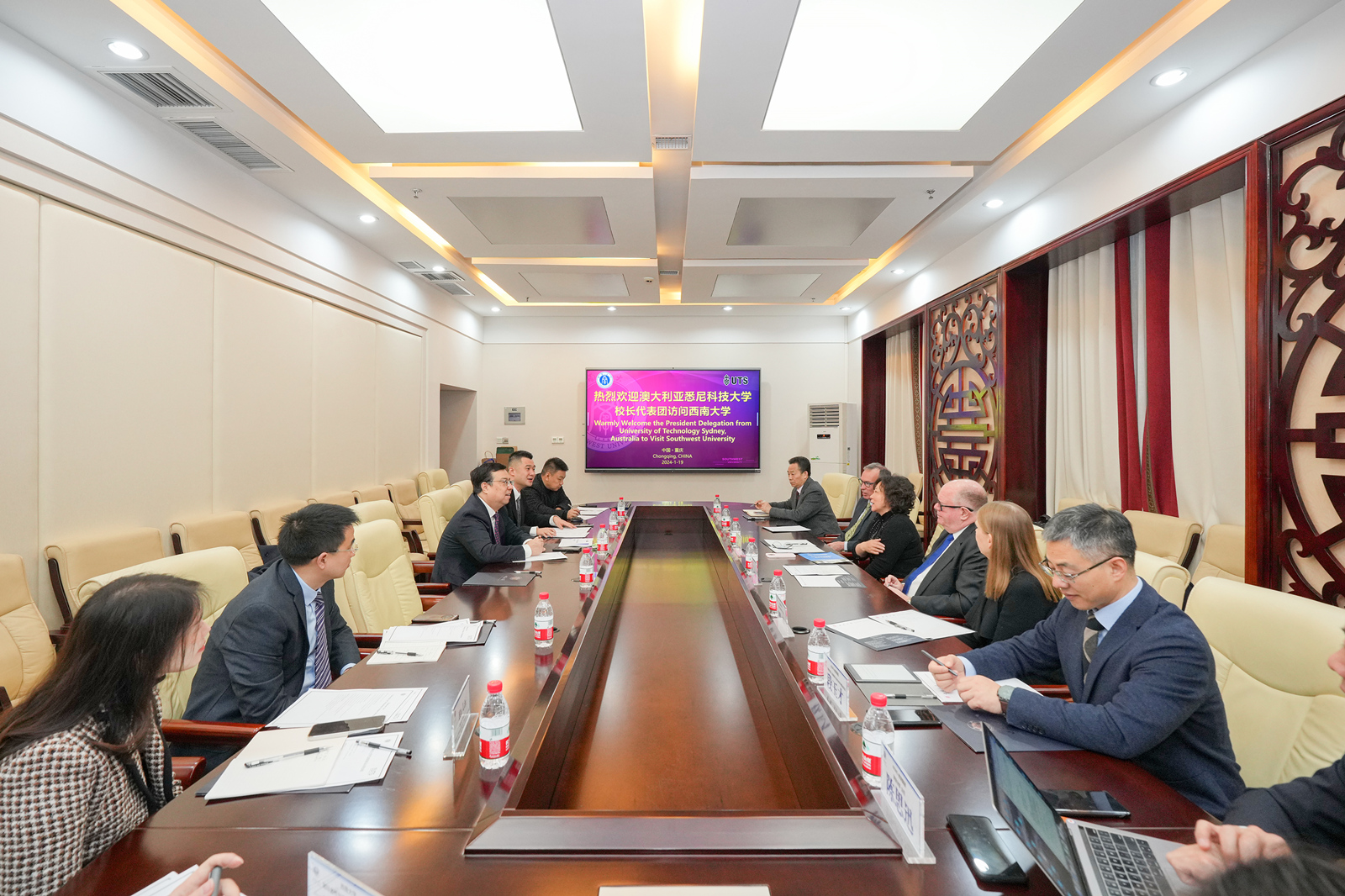 1月19日,澳大利亚悉尼科技大学校长安德鲁·帕菲特(Andrew Parfitt)一行访问学校。校长张卫国、副校长王进军会见客人,国际合作与交流处有关负责人参加会见。