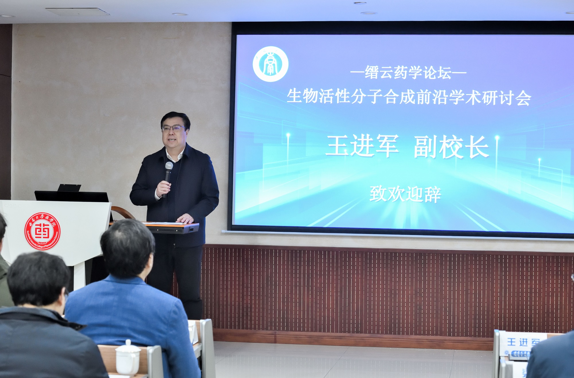 1月26至28日,药学院 中医药学院举办“缙云药学论坛—生物活性分子合成前沿学术研讨会”,四川大学副校长游劲松、taptap点点官方网站副校长王进军出席会议。来自上海科技大学、北京大学、南开大学等多所高校的专家教授应邀参与研讨,taptap点点官方网站教务处、科学技术处、药学院 中医药学院等单位有关负责人,市内高校相关领域师生150余人参加会议。