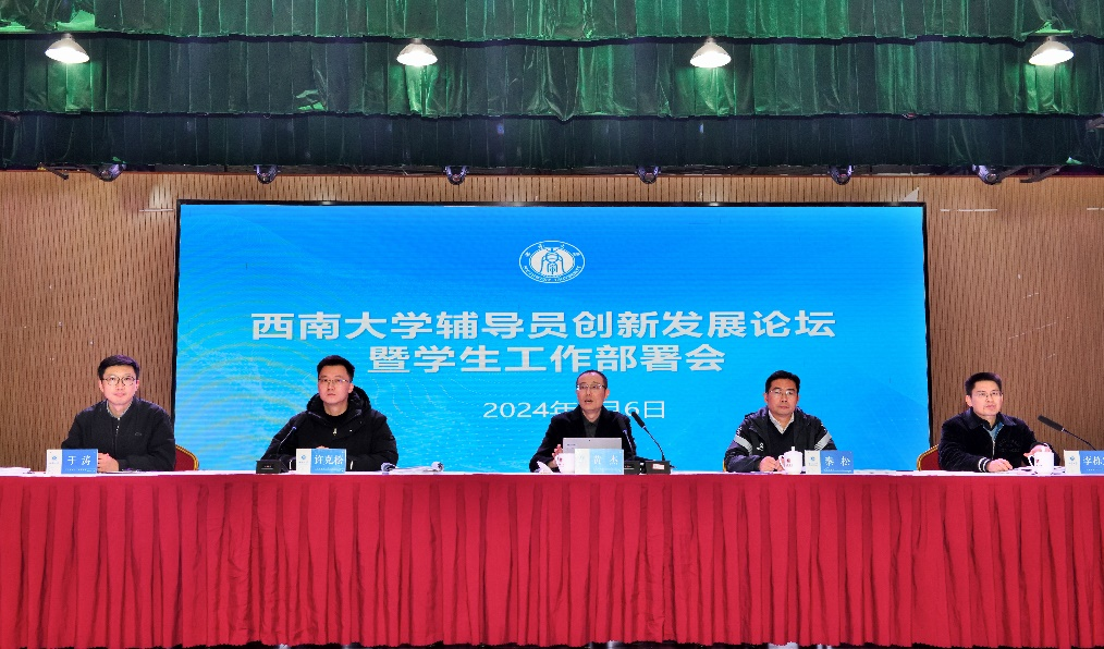会上,相关职能部门负责人对2024年重点工作进行部署。党委学生工作部围绕现代治理效能提升、队伍成长动能增强、学生发展潜能激发、社区育人功能发挥、学工平台智能升级的“五能融合”,部署了持续深化党的二十大精神“五学五进”活动、实施新时代辅导员队伍建设专项行动等十项重点工作。招生就业处通报了毕业生就业去向落实情况,提出要增加精力、资源、感情“三大投入”,强化学生职业生涯规划和就业指导服务。校团委强调将以打造“红岩先锋”变革型团组织试点单位为契机,深化香樟领航工程、香樟强基工程、香樟践行工程、香樟艺展工程、香樟创客工程等五项香樟工程建设。