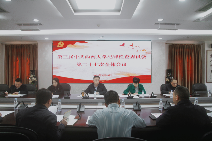 3月14日下午,第三届中共taptap点点官方网站纪律检查委员会第二十七次全体会议召开,传达学习上级会议文件精神,通报研究有关工作。学校党委副书记、纪委书记夏玉峰主持会议,纪委委员参加会议,纪委办监察处巡察办副处级以上干部列席会议。