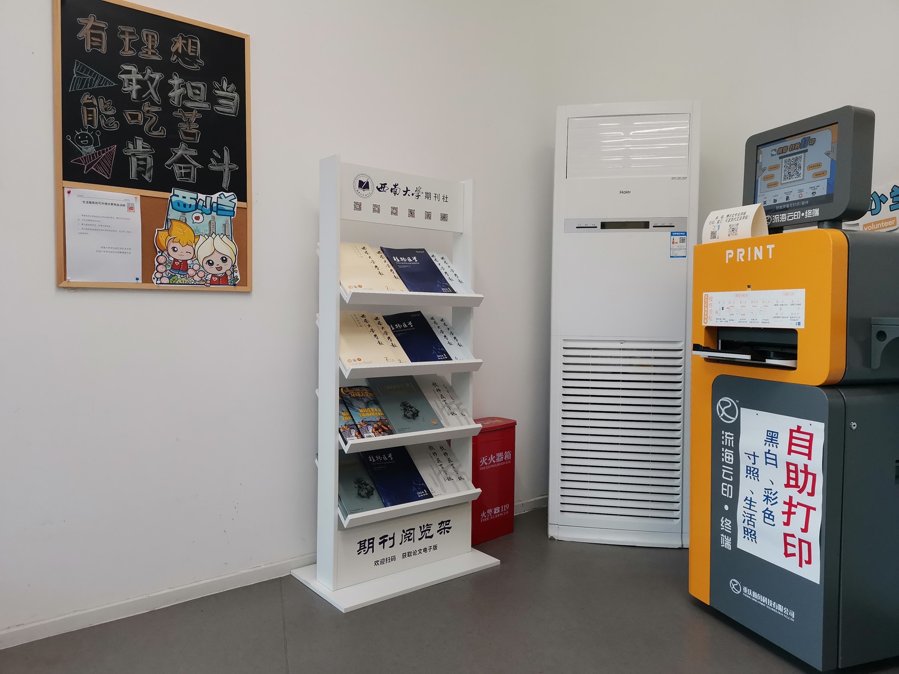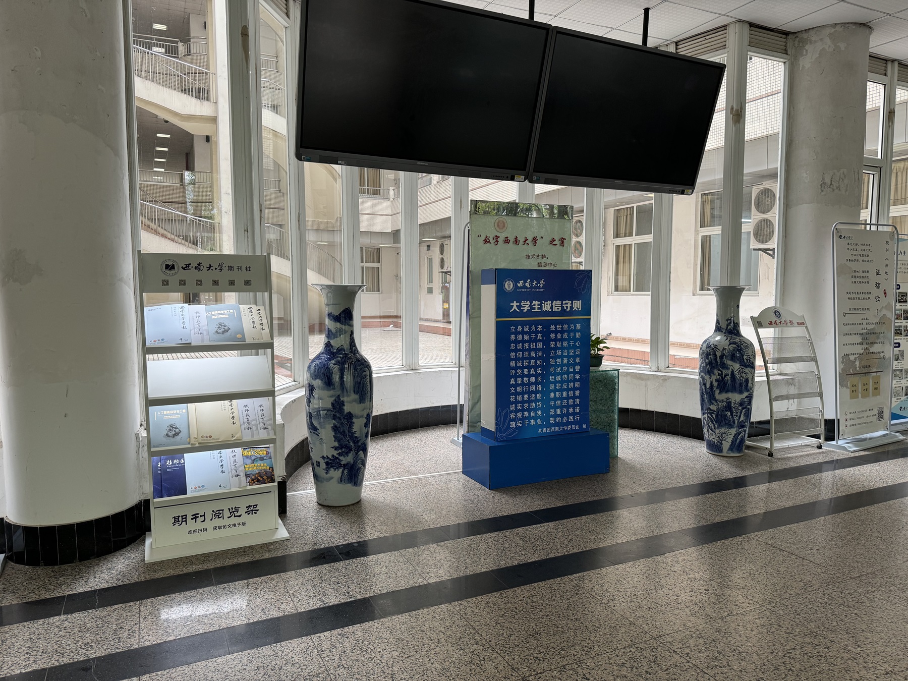 在“世界读书日”到来之际,为持续营造校园浓厚阅读氛围,近日,期刊社在校内多处师生集中活动的场所设置期刊阅览架,陈列学校出版的多种期刊,供师生阅读。