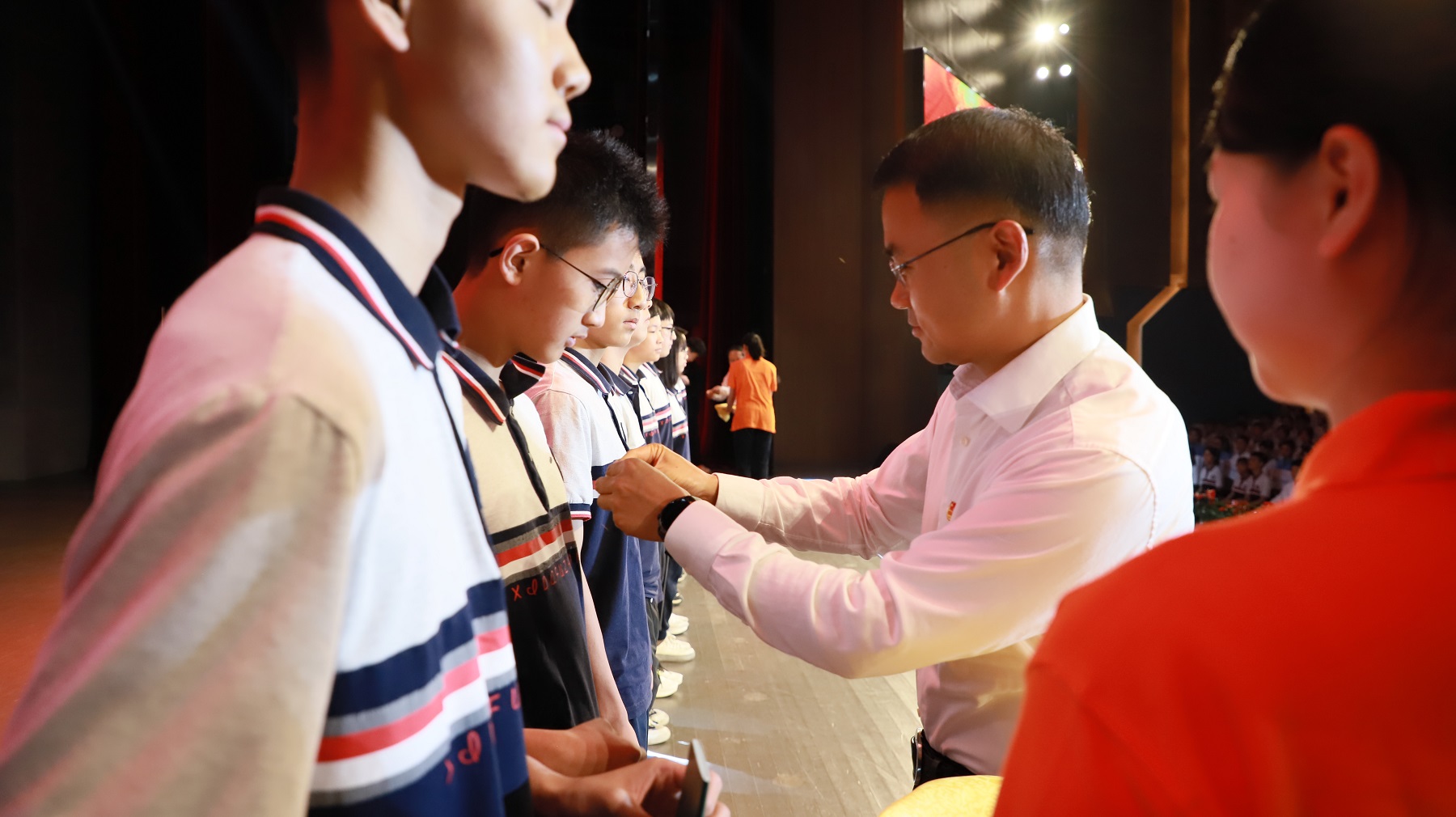 本次活动由团市委、市少工委主办,北碚区教委、团区委、区少工委、taptap点点官方网站附属中学承办,是重庆市2024年“五四”离队入团示范活动。团市委副书记张珂、北碚区政府副区长李纲、学校副校长周光明出席活动,团市委相关部室、北碚区相关部门、学校团委、附属中学等单位相关负责人,附属中学团员代表及其他观摩学校师生代表共计1500余人参与活动。