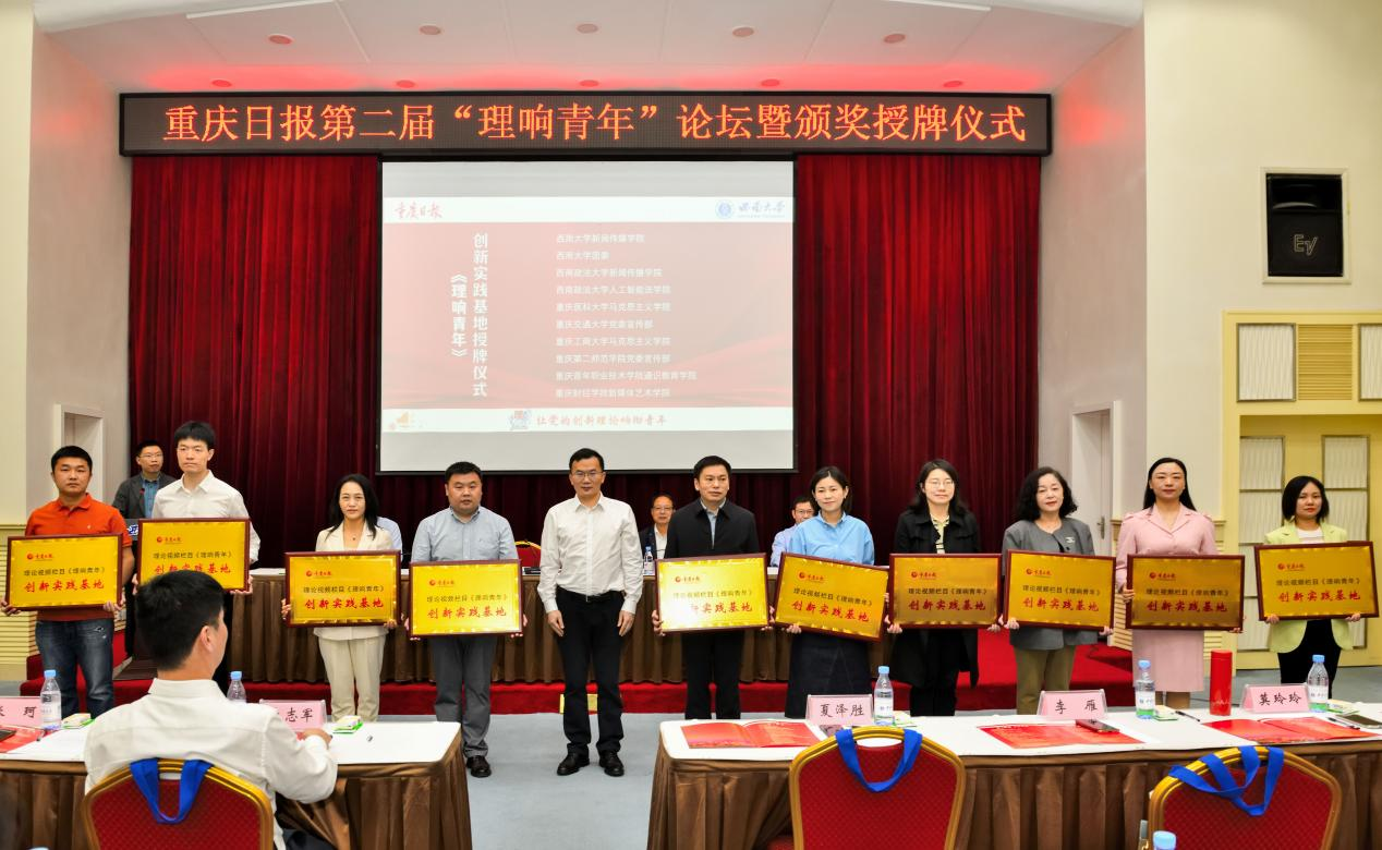 4月28日上午,由重庆日报报业集团、taptap点点官方网站共同主办,学校党委宣传部、党委网络工作部,新闻传媒学院和重庆日报理论视频栏目《理响青年》共同承办的重庆日报第二届“理响青年”论坛暨颁奖授牌仪式在桂圆宾馆金桂厅举行。