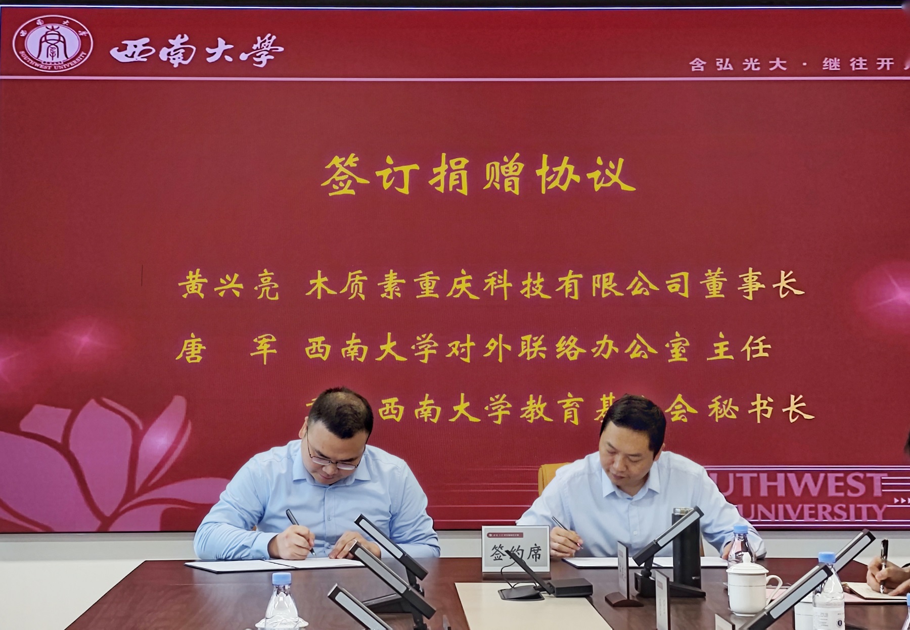 校友企业木质素重庆科技有限公司于2021年开始在化学化工学院设立“求真创新创业基金”,每年捐助1.6万元(共3年)。本次签约,捐助金额增加至每年15万元(共10年),主要用于支持化学化工学院师生开展创新创业项目及创新创业教育。