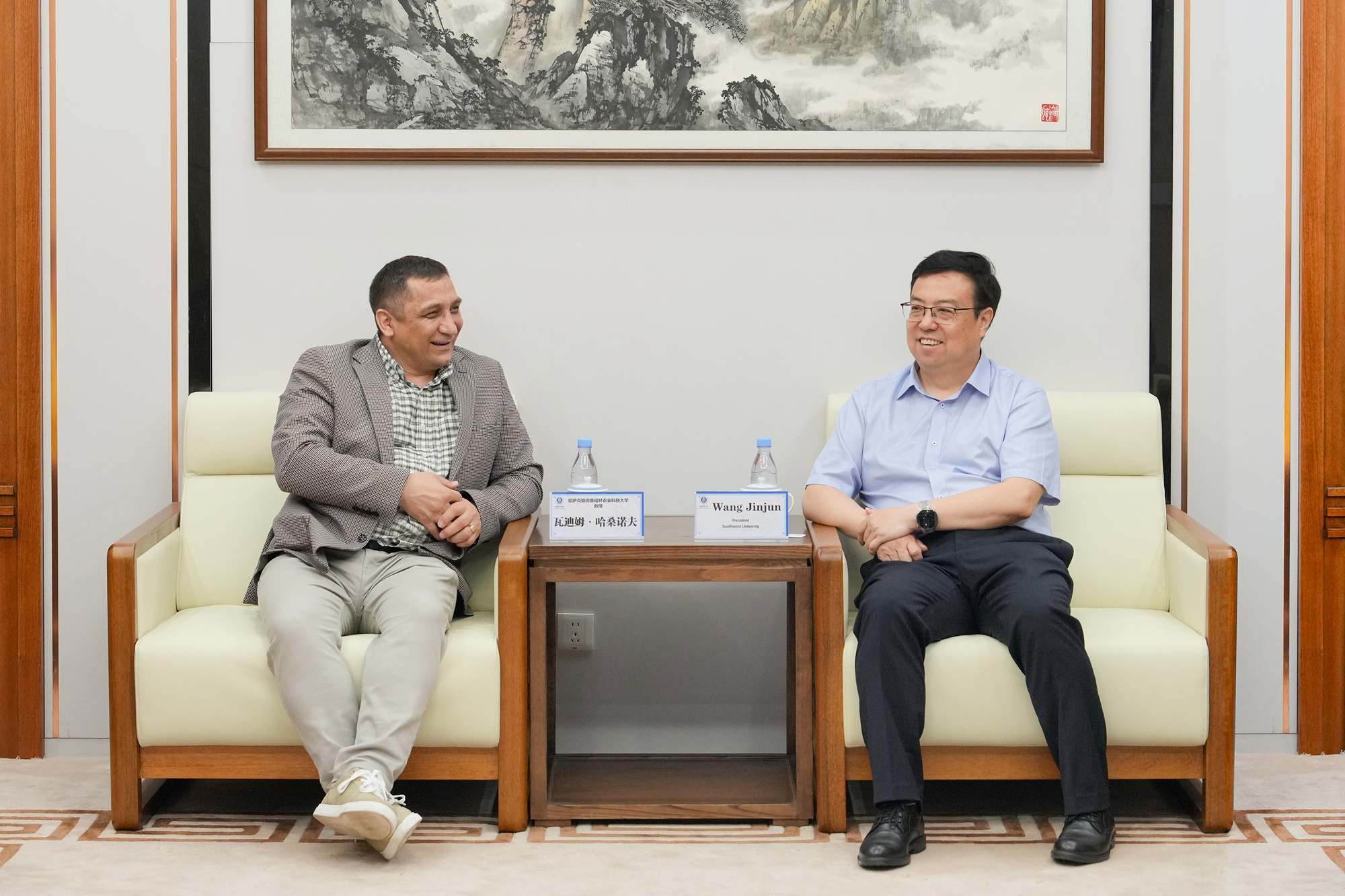 6月19日,哈萨克斯坦赛福林农业科技大学瓦迪姆·哈桑诺夫(Vadim Khassanov)教授一行来校访问。校长王进军会见客人,国际合作与交流处、农学与生物科技学院等单位有关负责人参加会见。