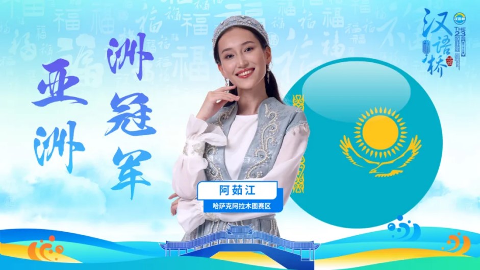 过桥赛阶段,阿茹江凭借对中华文化的热爱、丰富的知识储备以及出色的中文表达能力、舞台展现力,一路过关斩将,跻身全球30强。在之后的全球30强进5强晋级赛中,阿茹江在答题环节发挥突出,成功晋级为亚洲冠军。