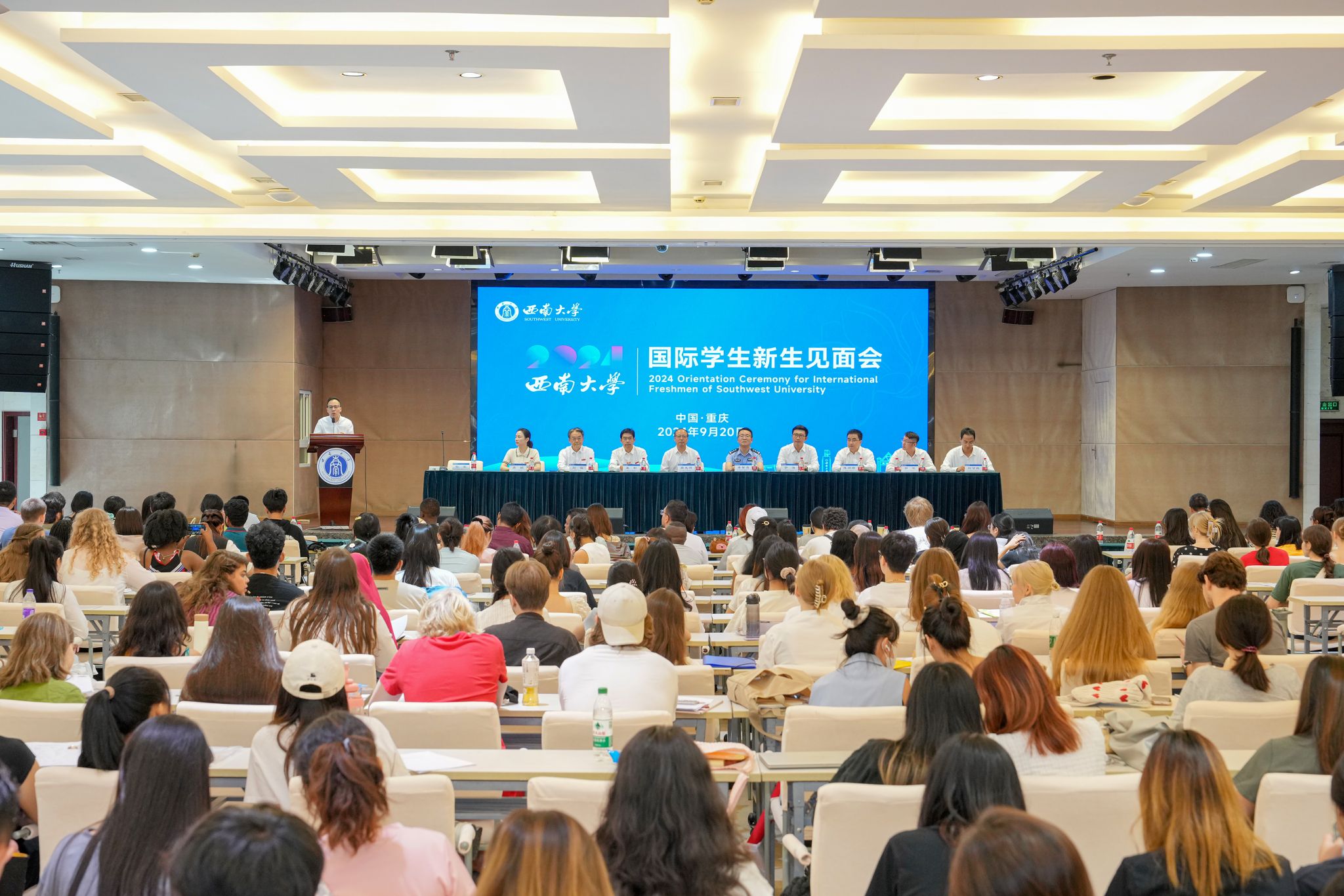 9月20日,学校在国际学院报告厅举行2024年秋季学期国际学生新生见面会。副校长周光明、重庆市公安局出入境管理总队境外人员管理支队支队长李智浩、学校有关职能部门负责人出席,来自全球40余个国家的近400名国际学生新生参加会议。国际学院党委副书记耿军主持会议。