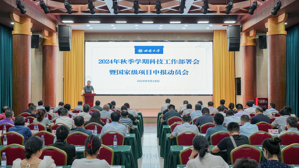 9月18日下午,学校召开2024年秋季学期科技工作部署会暨国家级项目申报动员会。校长王进军、副校长赵国华出席会议;各二级相关教学科研单位主要负责人、分管科研领导和科研秘书,学校相关职能部门负责人等90余人参加会议。会议由赵国华主持。