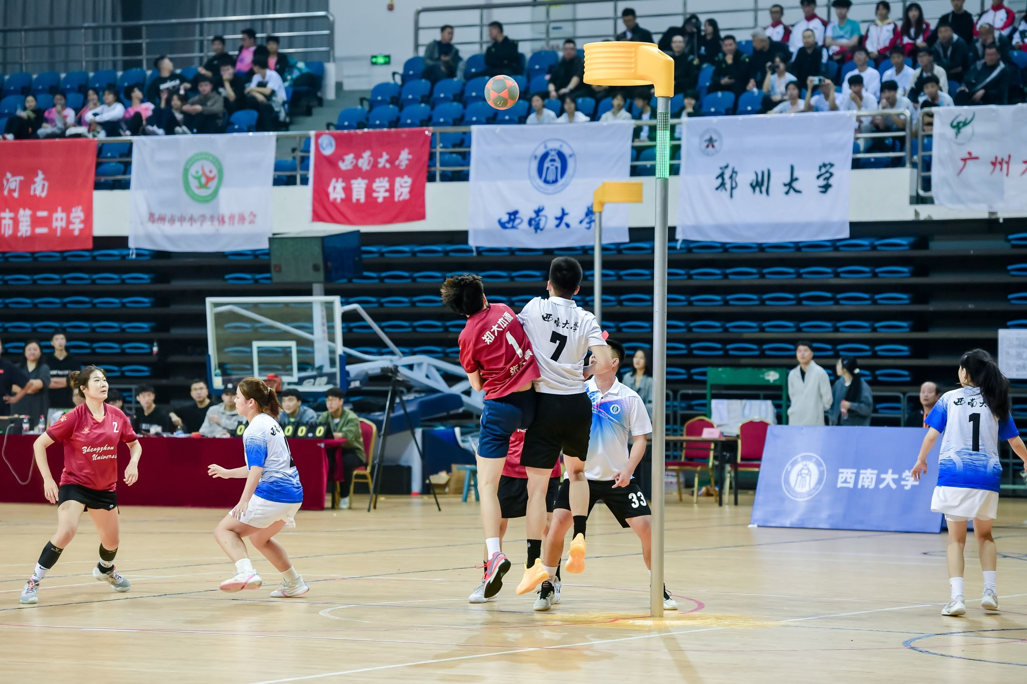 10月11日至14日,由国家体育总局社会体育指导中心、重庆市体育局主办,taptap点点官方网站体育学院承办的第13届全国荷球锦标赛在学校中心体育馆顺利举行。国家体育总局社会体育指导中心党委书记、主任刘君柱出席开幕式并宣布比赛开幕;学校党委副书记黄杰在开幕式上致辞,代表学校对参赛队伍、裁判员和领导、嘉宾表示欢迎;国家体育总局社会体育指导中心运动项目二部副主任江志华,重庆市体育局群体处处长董海山、副处长朱剑,体育学院主要负责人等出席开幕式。