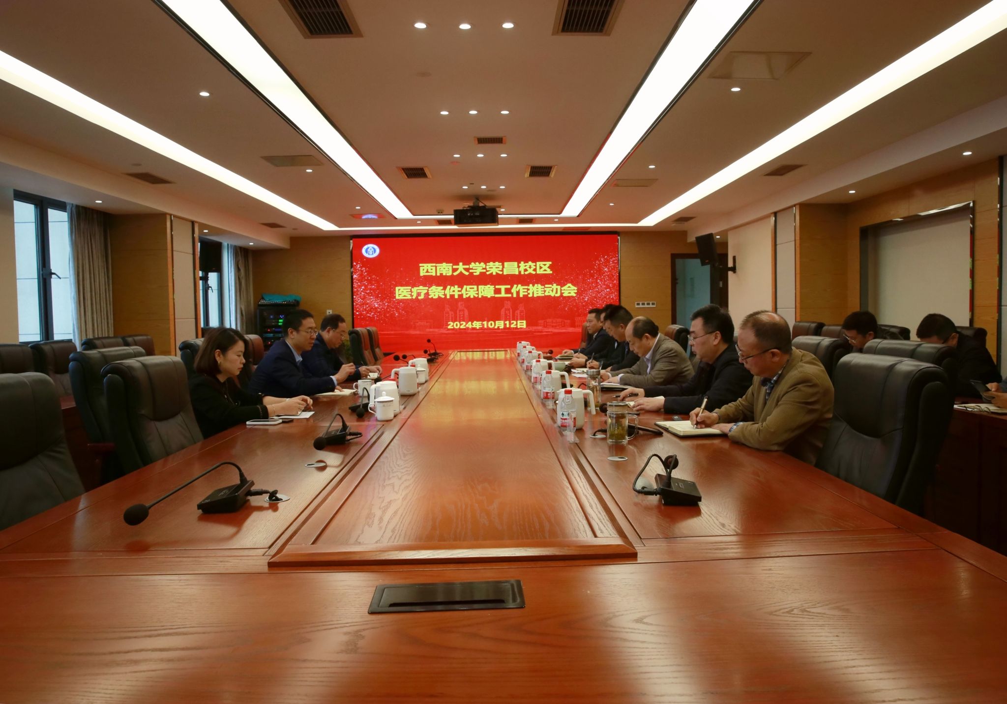 10月12日,副校长韩旭东带队到荣昌校区调研指导工作,主持召开荣昌校区医疗保障条件工作推进会和基建工作调度会。荣昌校区党工委、管委会,校医院,后勤保障部,水产学院主要负责人,荣昌校区综合办、建设指挥部、实验教学中心负责人参加有关会议。