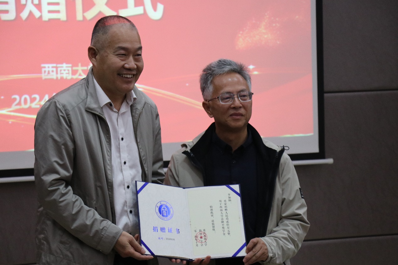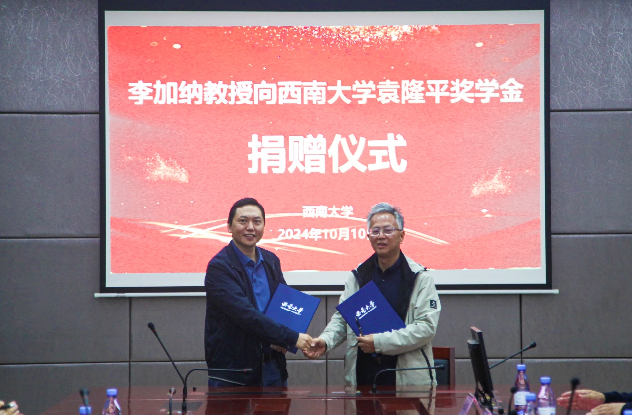 葛信勇赞扬了李加纳教授的高尚品德和在教学科研上为学校作出的卓越贡献,衷心感谢这一次极富意义的捐赠,期待在奖学金的支持下有更多优秀农业科学人才竞相涌现,为农业强国建设贡献力量。