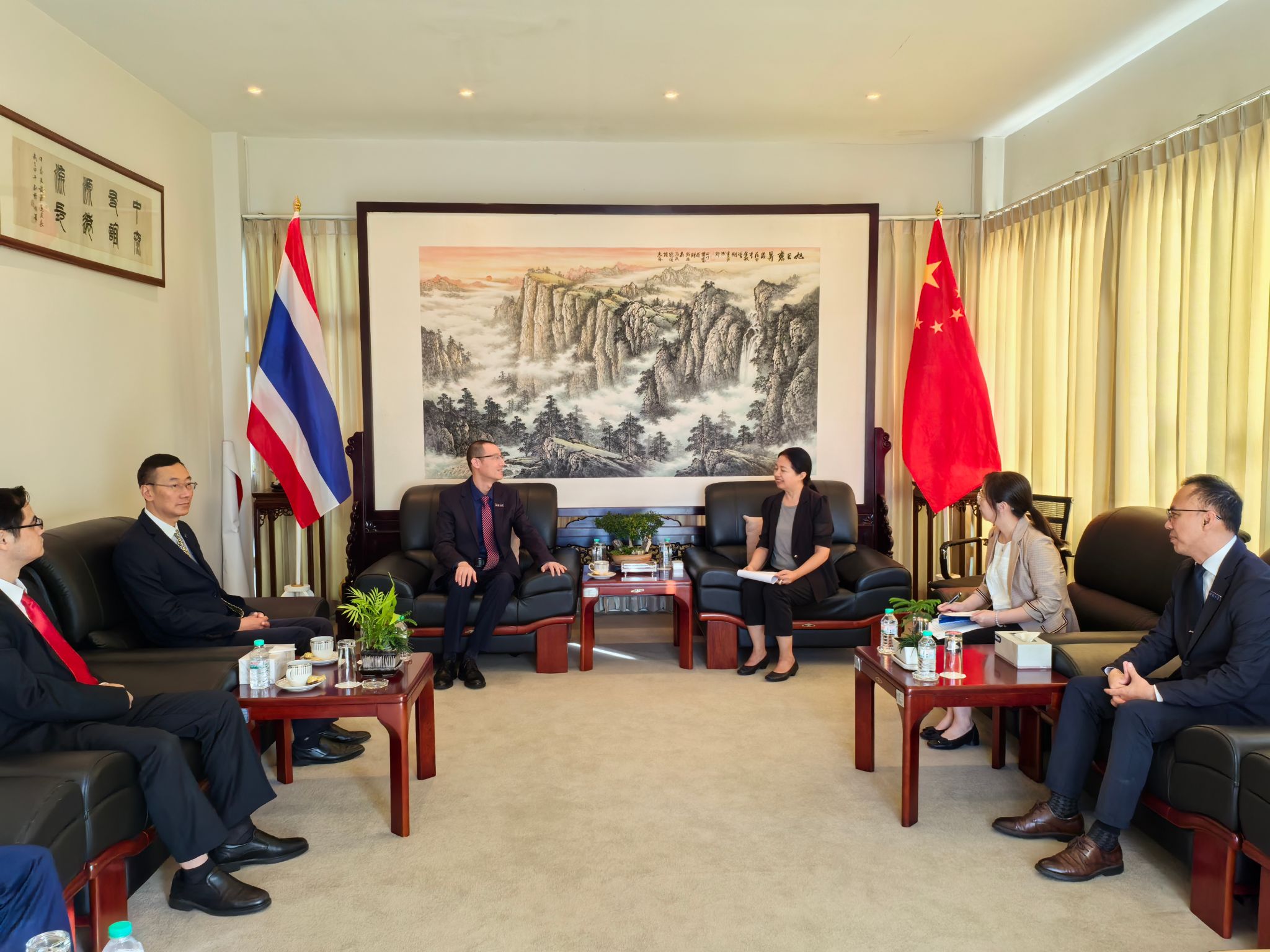 出访期间,学校代表团还看望慰问了孔子学院全体中方教师和部分泰方员工,听取了大家在泰的工作、生活情况汇报和对孔子学院的发展建议。代表团嘱咐师生们注意安全、保重身体,勉励大家在中文教学和中泰文明交流互鉴中守正创新、再创佳绩。