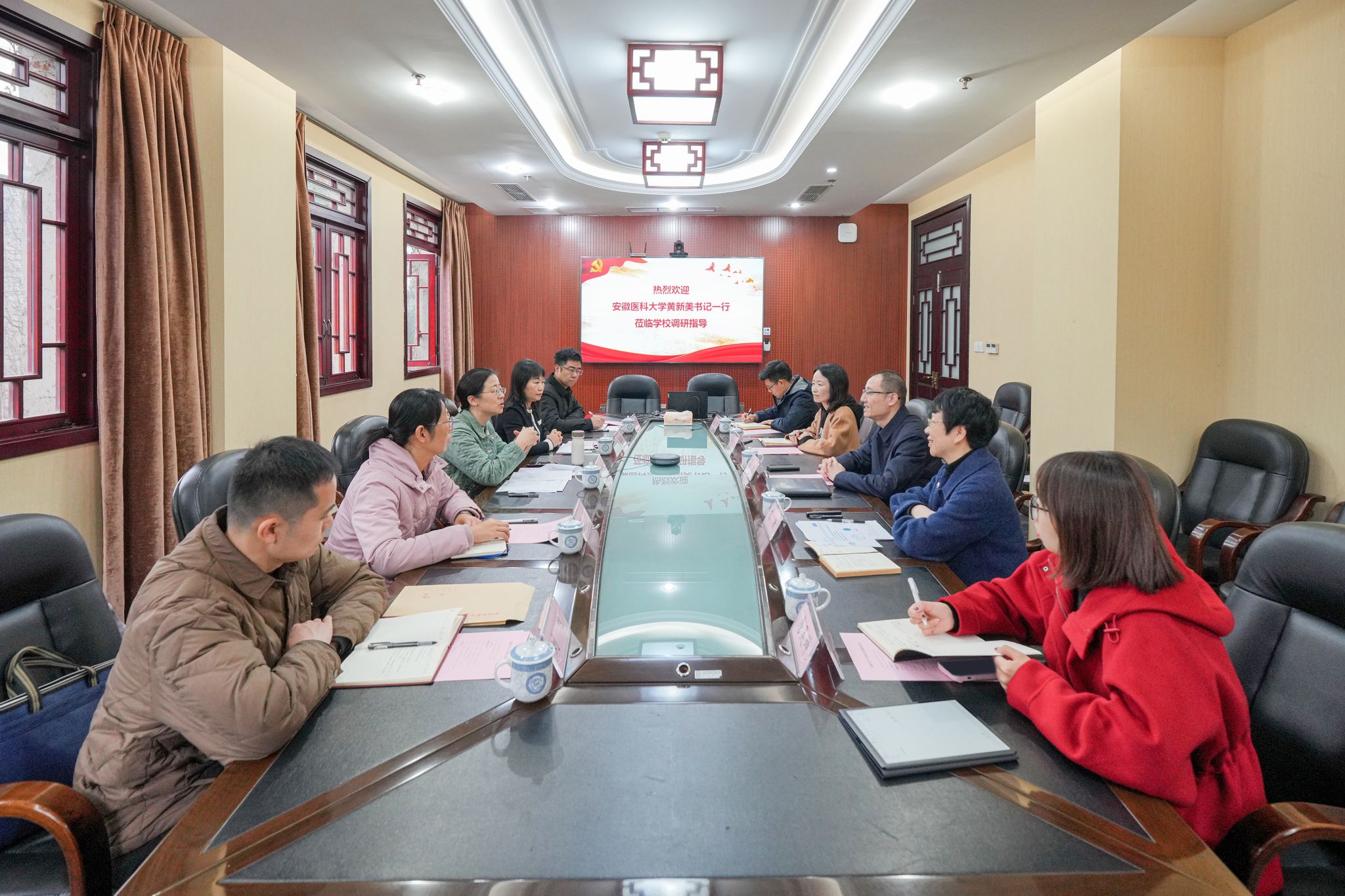 3月4日,安徽医科大学党委常委、纪委书记、监察专员黄新美一行来校调研纪检监察和巡察工作。学校党委副书记黄杰,纪委办、巡察办相关负责人参加交流座谈会。