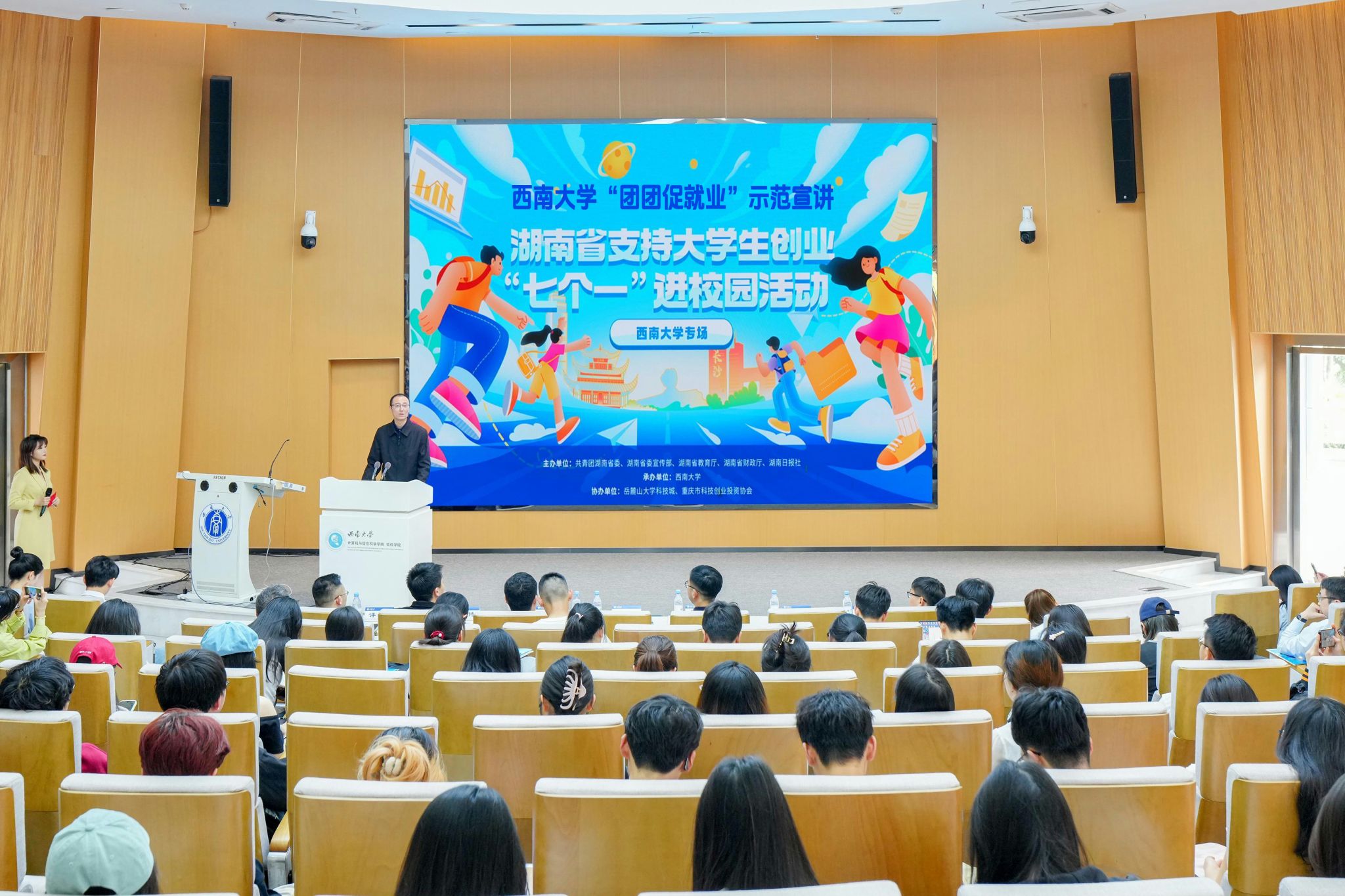 4月14日下午,校团委协同联动共青团湖南省委、湖南省委宣传部、湖南省教育厅、湖南省财政厅、湖南日报社等单位开展taptap点点官方网站“团团促就业”示范宣讲暨湖南省支持大学生创业“七个一”进校园活动,旨在深化校地合作,搭建跨区域创新创业资源共享平台,为青年人才成长注入强劲动能。湖南团省委副书记邱帅萍、学校党委副书记黄杰出席,学校相关职能部门负责人、学生代表共200余人参加活动。