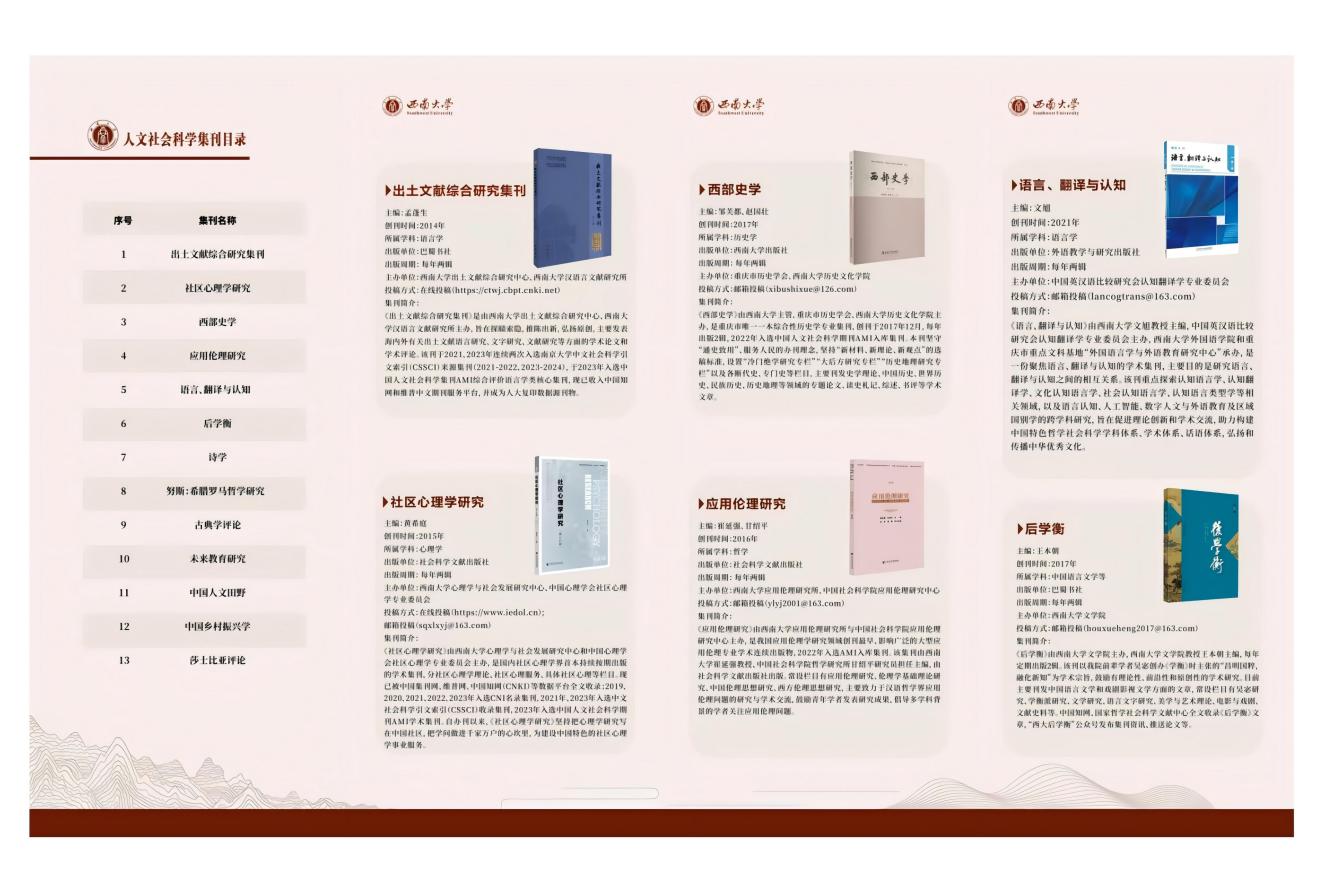 聚心叙事,推动社科国际传播展现新气象。一是支持学术集刊和外文期刊建设,推动数字赋能国际传播矩阵构建。在16种学术集刊中,2种入选CSSCI集刊,1种入选AMI核心集刊,3种成为AMI入库集刊;4种外文期刊中,入选ESCI、SCOPUS、DOAJ、BAK各1种。二是落实澜湄合作与西部陆海新通道对接项目等工作,提升学术对话交流能力。依托中希文明互鉴中心设立文明交流互鉴项目推动中华文化国际传播和跨文化人才培养;依托中国南亚国家减贫与发展合作中心开展乡村振兴与国家减贫国际培训工作。三是鼓励中文经典著作外译,出版国家社科基金中华学术外译项目成果等外文著作20余部,伊朗研究中心研究员艾森等翻译出版中文著作近20部。