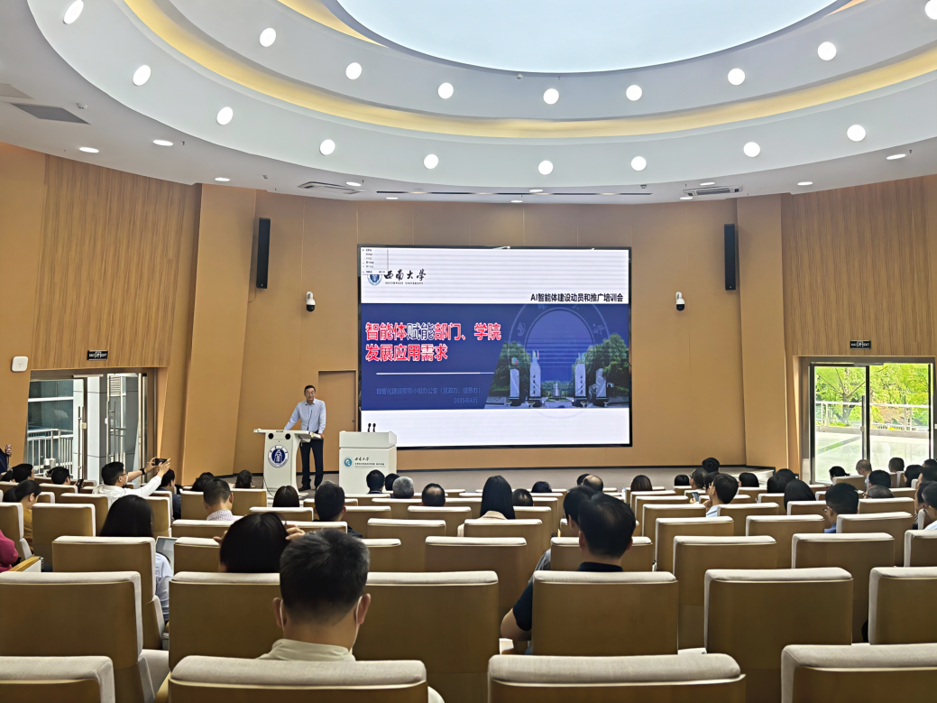 信息化建设办公室主任熊海灵立足数智西大整体规划,对AI智能体建设与应用作出动员及部署。他强调智能体建设在数智西大建设中的重要地位,希望AI真正成为师生的数字助手。