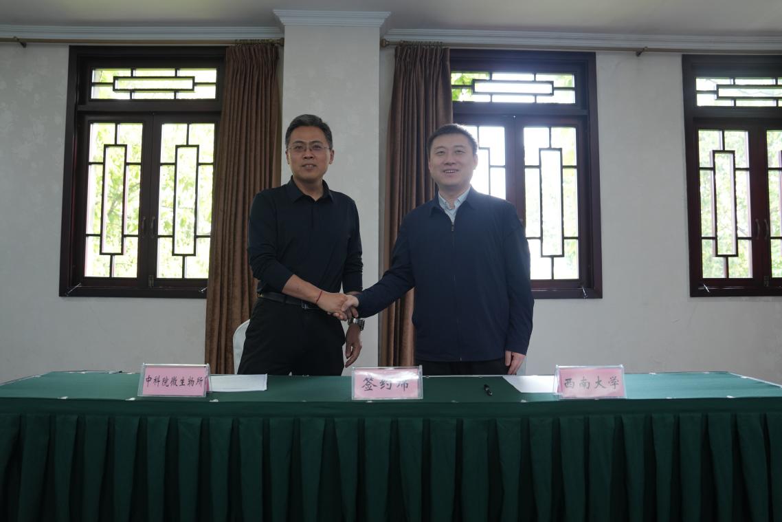 与会人员围绕进一步推进贯通式人才培养、学科联合攻关、仪器平台开放、人才队伍互访等方面展开了深入探讨。中国科学院微生物研究所副所长王琳淇与范大明代表双方签订了研究生联合培养协议。