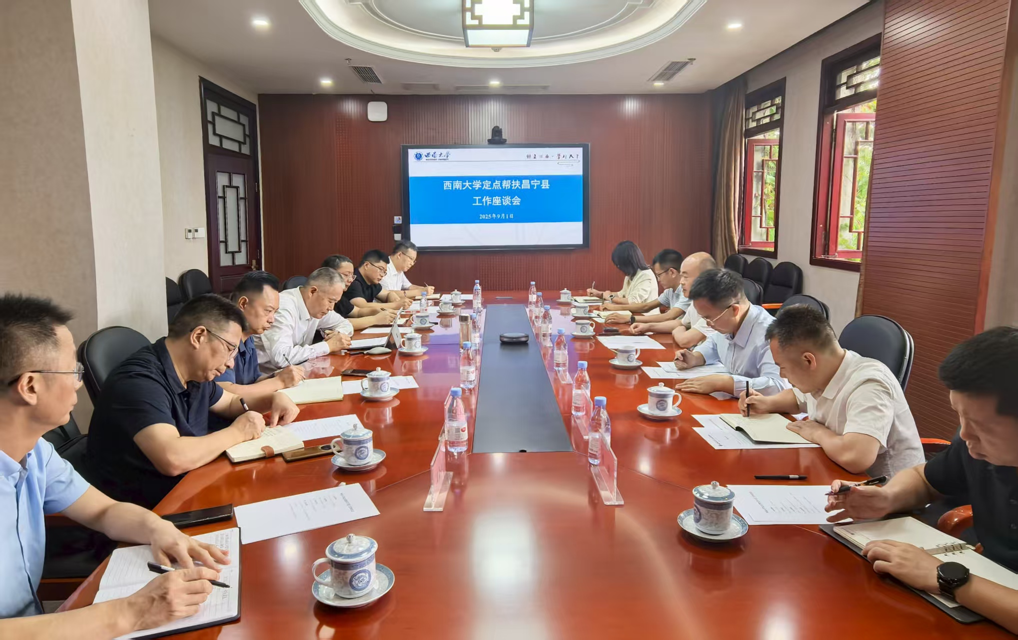 与会单位就建设好西大茶叶有限公司昌宁分公司、协同打造教育共同体、深化基层社会治理工作等帮扶事项进行了深入交流。