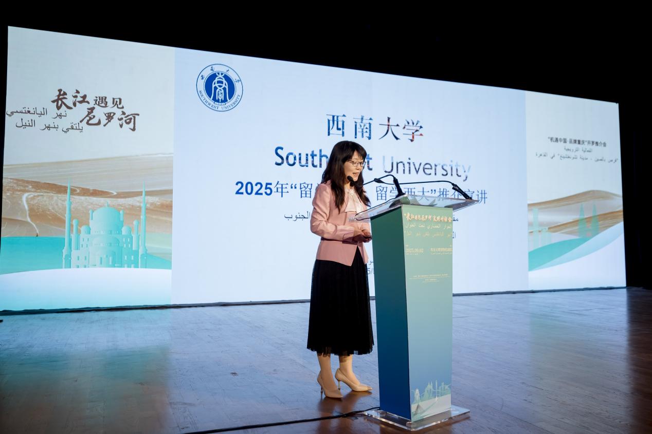 在“长江遇见尼罗河”中埃青年交流环节,赵玉芳介绍了学校在培养埃及留学生方面的实践经验。她表示,未来,学校将持续深化与埃及等国家的教育合作,依托‘留学重庆’行动计划,不断扩大生源规模、丰富合作形式,助力重庆建设成为全球优秀青少年留学及创新创业的优选之地。