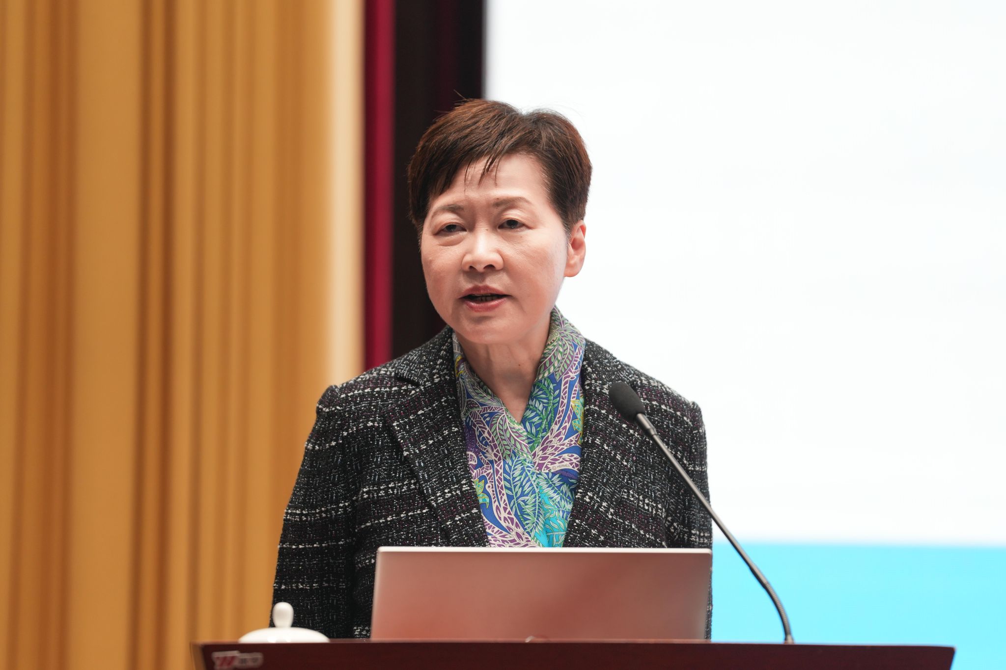 9月12日,香港特别行政区第五任行政长官林郑月娥女士到访学校,为师生代表作了题为《坚持和完善“一国两制”在香港的实践》的专题报告。党委书记张卫国主持。