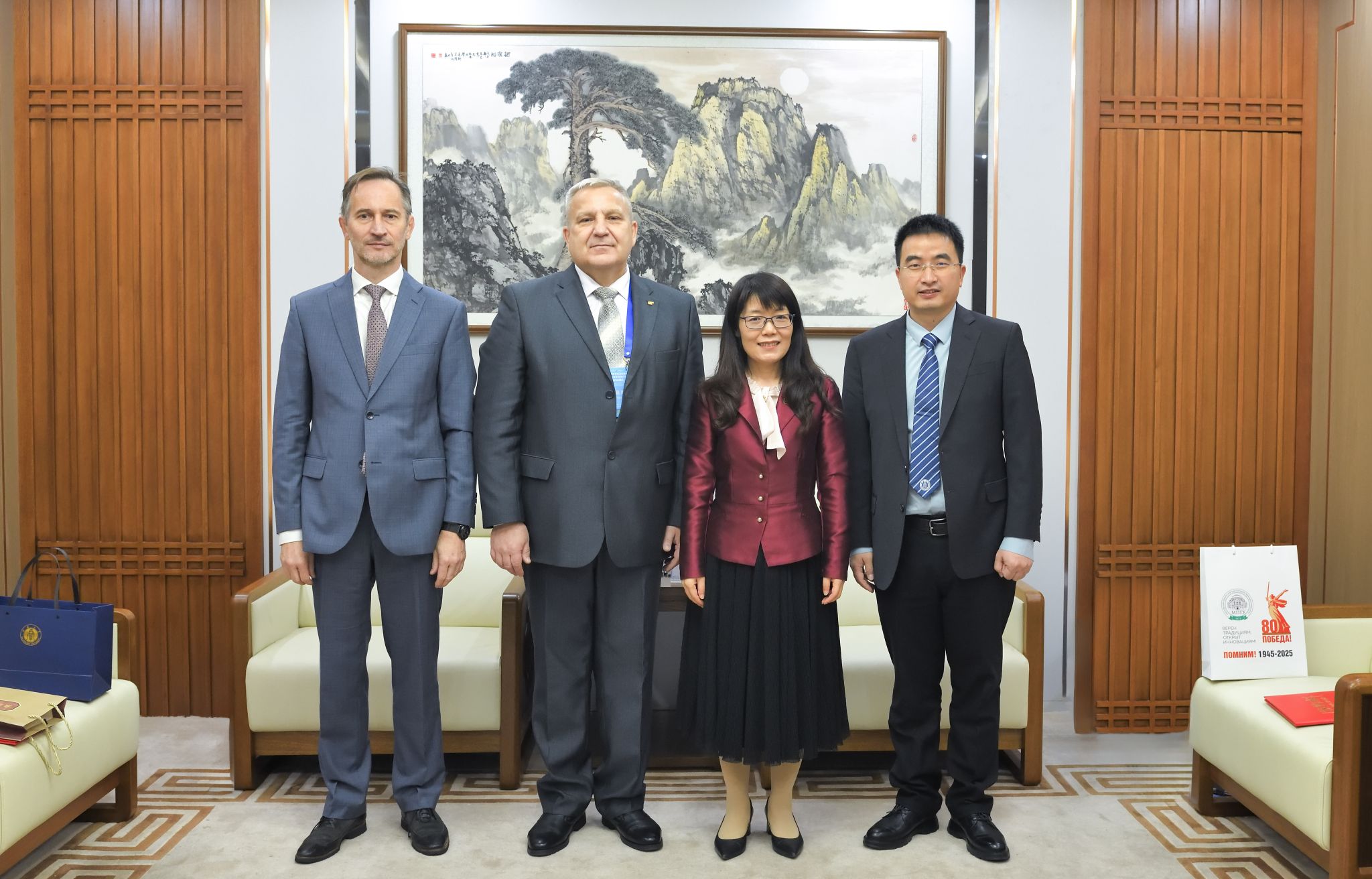 随后,副校长赵玉芳会见了莫斯科国立师范大学副校长瓦西里·斯特拉霍夫(Vasiliy Strakhov)一行。会谈期间,双方共同交换了已签署的合作协议,为未来合作奠定了坚实基础。