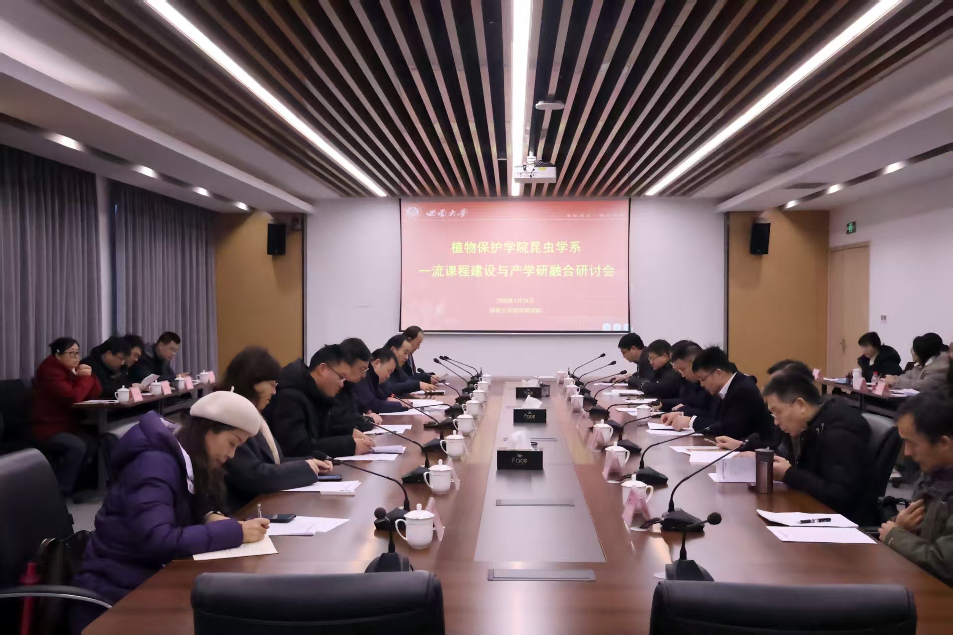 1月24日,植物保护学院 “一流课程建设与产学研融合” 主题研讨会在宜宾研究院召开。会议聚焦普通昆虫学、农业昆虫学等核心课程一流建设路径和产学研协同育人机制进行深入研讨。校长王进军出席,植物保护学院、宜宾研究院相关负责人参加,共同为学科教学高质量发展建言献策。