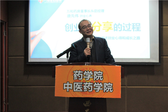 签约仪式上,杨坚副书记宣读签约内容,表示双方主要合作方向是建立taptap点点官方网站药学院教学药房,拟在taptap点点官方网站药学院新大楼建立万和智慧药房,设立万和医药奖学金等五个方面。胡昌华院长代表药学院与唐先伟董事长进行签约仪式。随后,唐先伟董事长作了“创业是分享的过程”为题的精彩报告。