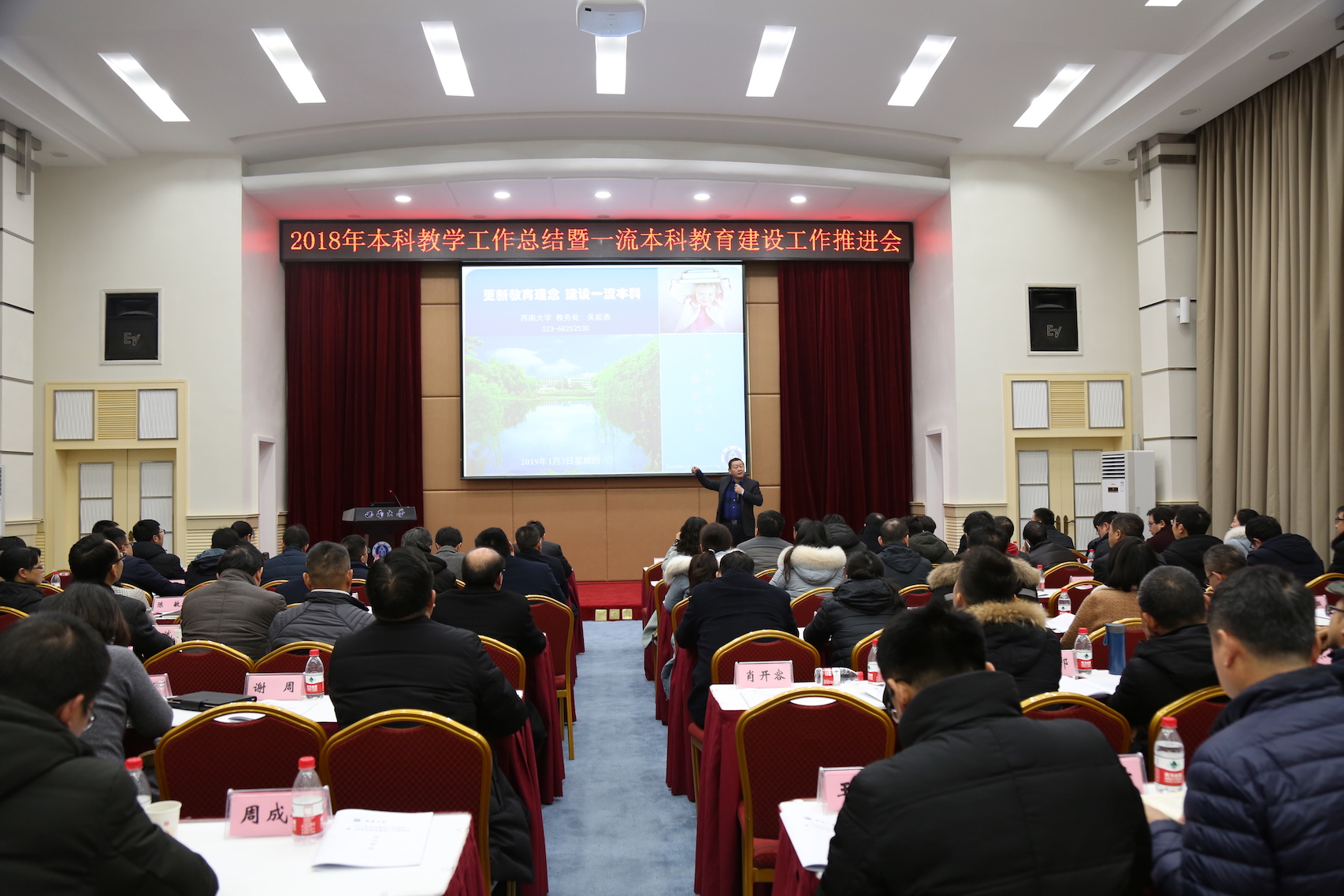 2018年本科教学工作总结暨一流本科教育建设工作推进会1月3日在桂园宾馆金桂厅召开。会议邀请了原厦门大学副校长邬大光教授作主题报告,taptap点点官方网站副校长靳玉乐出席会议并讲话,各学院(部)分管本科教学工作副院(部)长、各专业负责人,党委宣传部 党委网络工作部、团委、教务处等职能部门负责人参加会议。会议由靳玉乐副校长主持。