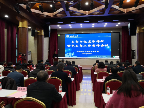 为总结2018年度机关党委各支部书记抓党建和支部工作情况,进一步推动全面从严治党向基层延伸,1月10日,机关党委在东方红会议厅召开支部书记述职评议暨党支部工作考评会议。校党委副书记安春元出席会议。机关党委委员、纪委委员、支部书记和支部委员出席会议。会议由机关党委副书记、纪委书记万劲主持。