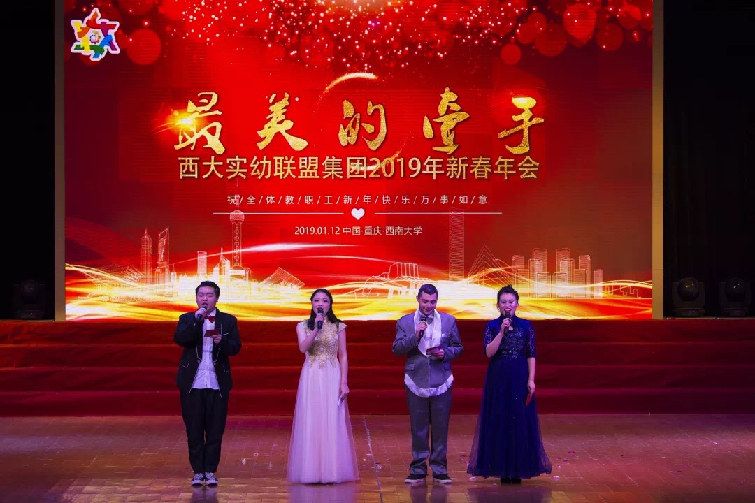 1月12日,taptap点点官方网站实验幼儿园举办“最美的牵手”西大实幼联盟集团2019新春年会,23所姊妹园联合为新春送上祝福。北碚区教委副主任饶英、重庆市教育科学研究院学前教育中心主任徐宇、北碚区教师进修学院副院长黄吉元、北碚区教师进修学院学前教研员周霞莅临现场,同时到会的还有西大实幼退休教职工,及西大实幼全体教师。