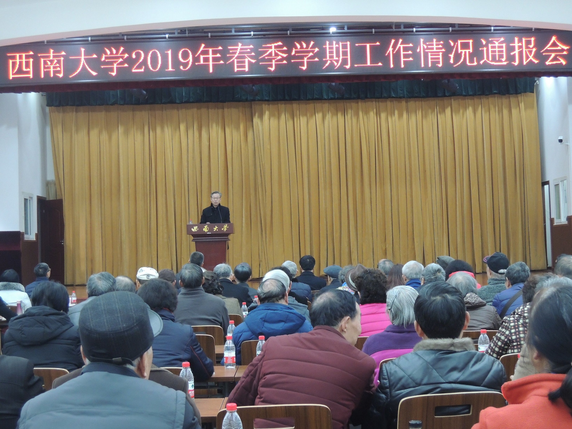 李书记着重从党建工作、“双一流”建设、思想政治工作三个方面介绍了2019年主要工作。李书记指出,2019年学校要把政治建设摆在首位,落实基层党建工作基本要求,深化和巩固巡视巡察整改成果,持续推进思想理论建设,抓好重大风险防控与安全稳定工作,切实加强意识形态工作,提升基层党建工作质量,全面加强干部队伍建设,履行全面从严治党主体责任和监督责任,做好统战群团和离退休工作。2019年学校要加强“双一流”建设,落实内涵式发展重点举措,优化学校内部治理,全面提高人才培养质量,聚力推进一流学科建设,切实增强人才队伍实力,扎实提高科学研究水平,着力强化社会服务能力,持续推进国际化办学,积极改善办学条件保障。2019年学校要完善思想政治工作体系,落实立德树人根本任务,建设师德师风长效机制,发挥校园文化育人功能。