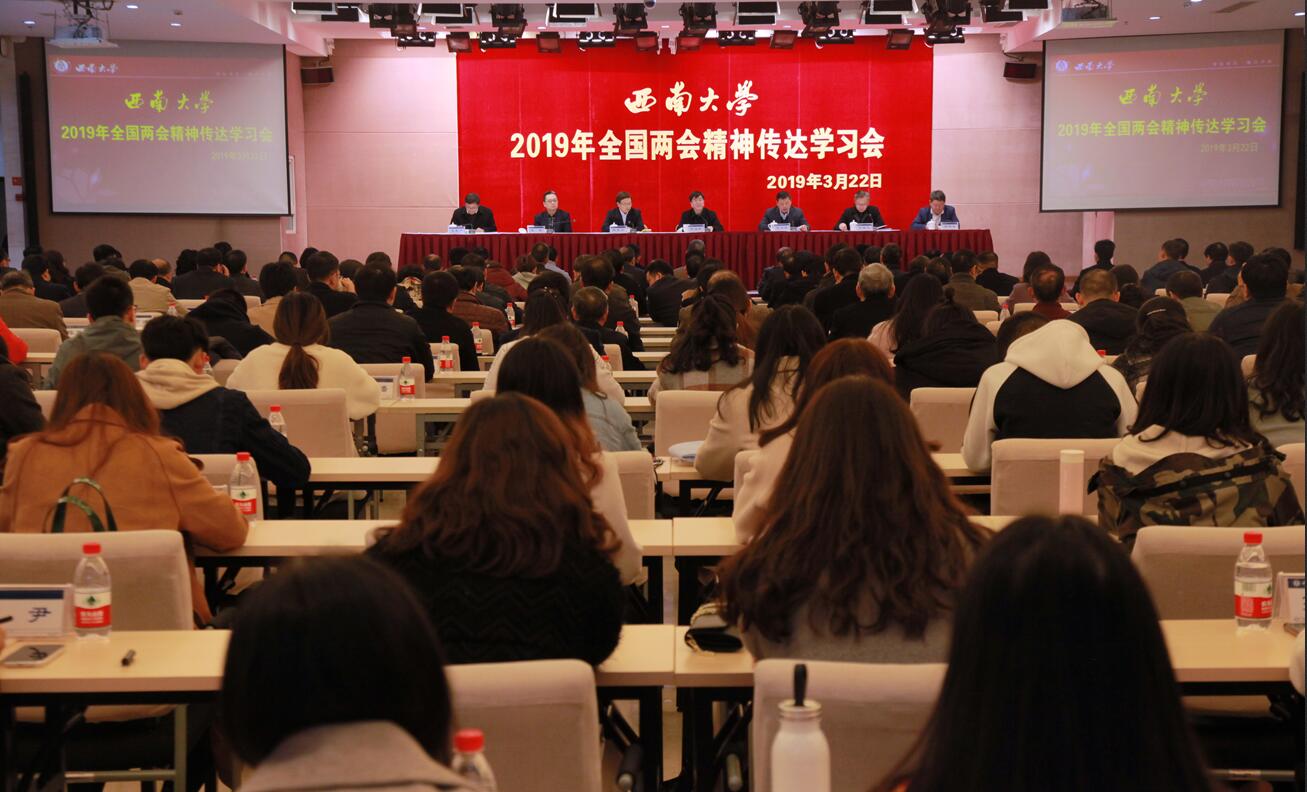 按照学校党委统一部署,2019年全国两会精神传达学习会3月22日在国际学院报告厅举行,专题传达学习习近平总书记两会期间重要讲话精神和全国两会精神,对当前和今后一段时期学习好、宣传好、贯彻好总书记重要讲话精神和全国两会精神进行了安排部署。