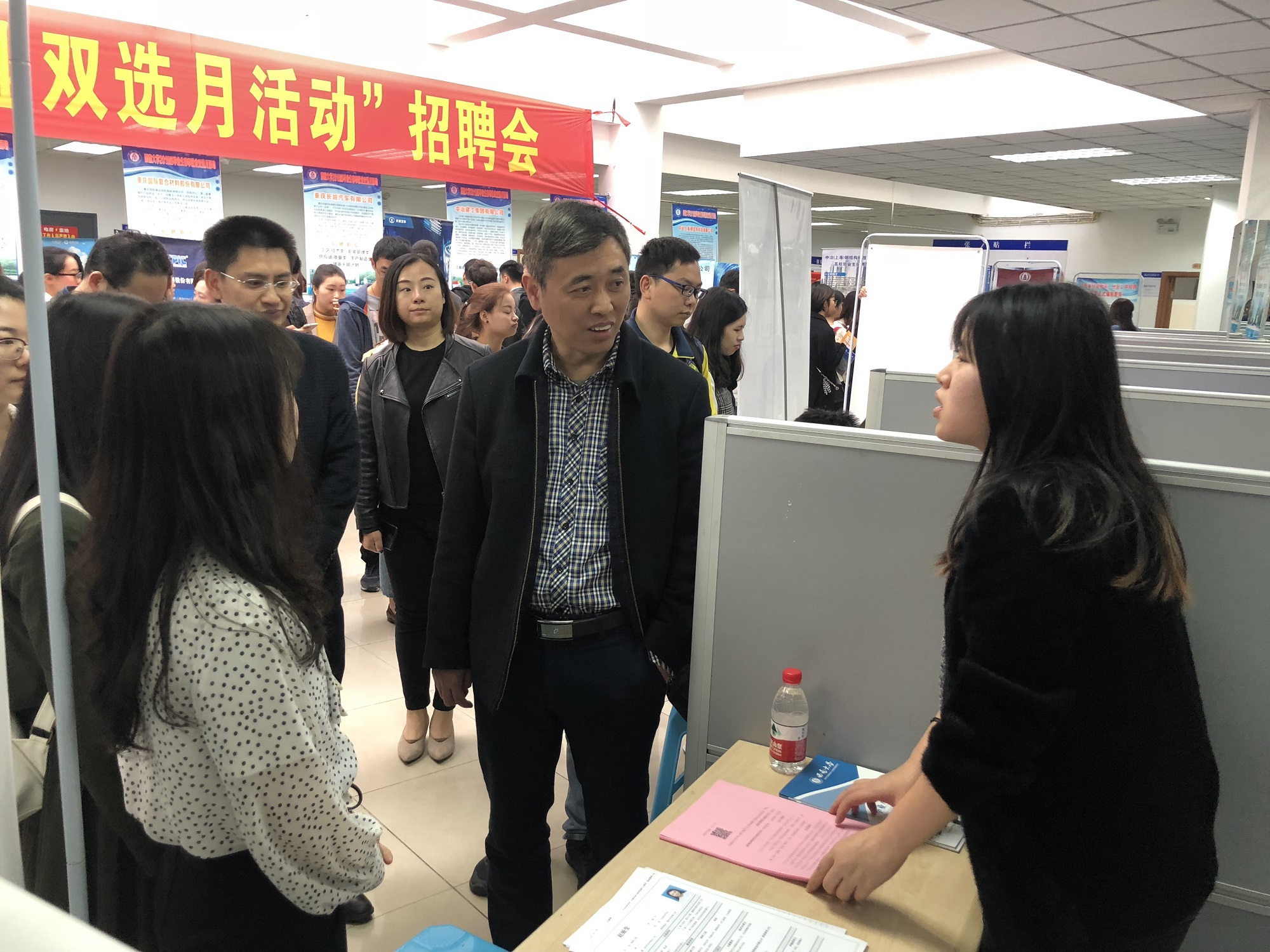 学校党委副书记潘洵深入双选会现场看望用人单位参会代表,了解校园招聘的岗位需求,感谢各单位对学校毕业生就业工作的支持,并和前来求职的毕业生亲切交流,鼓励大家抓住机会尽快签约。潘书记表示,希望职能部门和学院(部)进一步搭建好供需平台,为毕业生提供精准指导和优质服务,把毕业生就业工作抓实抓好,实现毕业生充分就业、高质量就业。