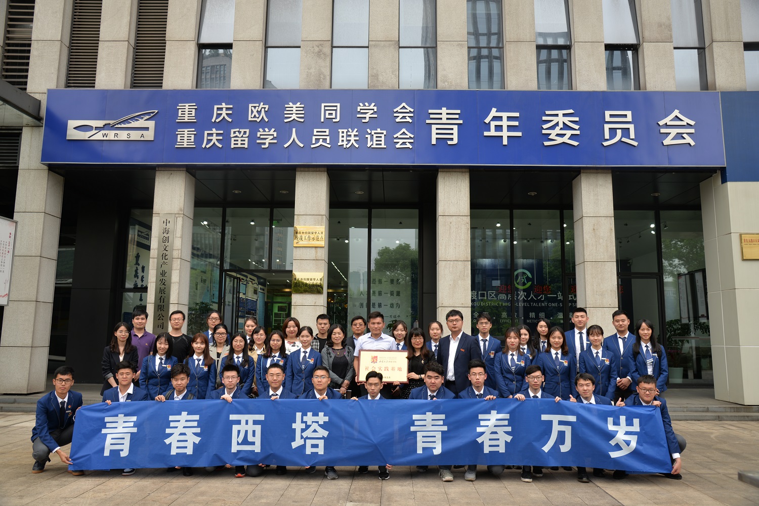 4月28日,市委常委、统战部部长李静,市政协副主席、重庆欧美同学会(重庆留学人员联谊会)会长陈贵云等领导为青年委员会揭牌。西塔学院学子是青年委员会成立后第一批走进该地学习参观的“客人”,西塔学院也是第一个与该地共建社会实践基地的高校学院。