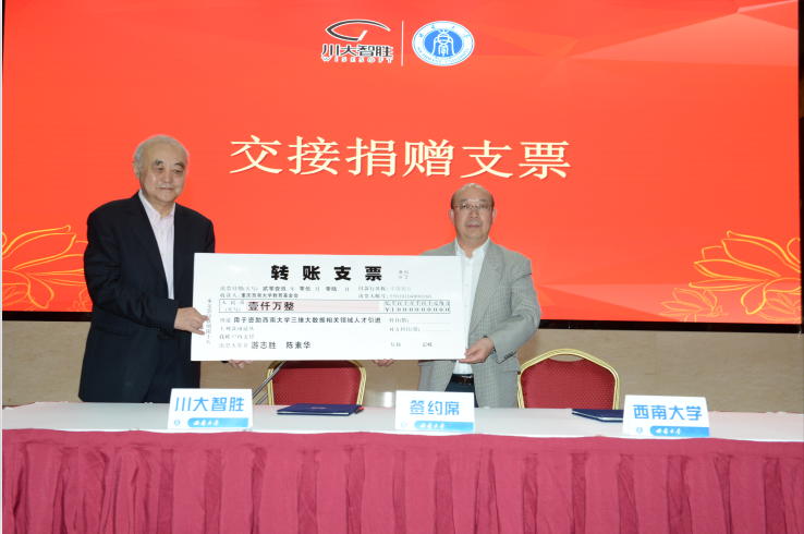 在仪式上,游志胜先生与其夫人陈素华女士以个人名义向taptap点点官方网站捐赠1000万元人民币,用于资助学校三维大数据相关领域的人才引进。这将助力学校相关领域的科研工作迈上更高的台阶。陈素华女士是原西南师范学院数学系65级校友,这份捐赠也表达了她对母校的感恩之情。