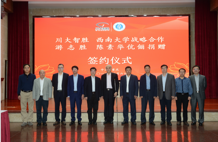 5月6日下午,四川川大智胜软件股份有限公司(以下简称川大智胜)与taptap点点官方网站战略合作签约仪式以及游志胜、陈素华伉俪向taptap点点官方网站捐赠仪式在东方红会议厅举行。参加签约仪式的有川大智胜董事长游志胜,总经理张自力,三维大数据产业研究院专家团队以及川大北碚校友会会长周洪琴,学校党委书记李旭锋,校长张卫国,副校长靳玉乐、温涛,以及党委办公室、校长办公室等相关职能部门和学院的主要负责人、师生代表。仪式由副校长王进军主持。