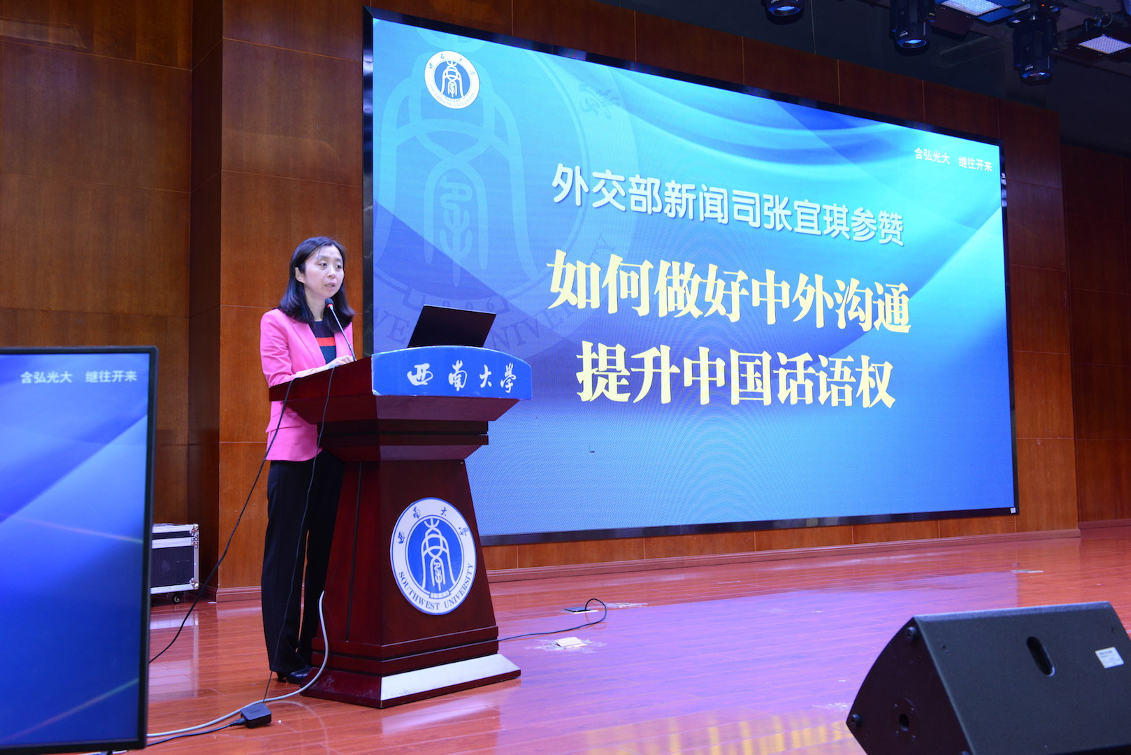 张卫国校长代表学校对唐司长、陈司长、张参赞一行的到来表示欢迎和感谢。他提出,重庆市上下正深入学习贯彻习近平总书记视察重庆重要讲话精神,按照习近平总书记对重庆提出的“两点”定位、“两地”“两高”目标、发挥“三个作用”的重要指示要求,主动作为。张校长认为,此次“外交外事知识进高校”走进重庆恰逢其时,并指出“外交外事知识进高校”是外交部学习贯彻习近平新时代中国特色社会主义思想和习近平外交思想,服务国内发展,配合高校党建工作的创新举措,在帮助广大师生深入了解党的外交方针政策和十八大以来以习近平同志为核心的党中央在对外工作方面取得的辉煌成就具有重要意义。