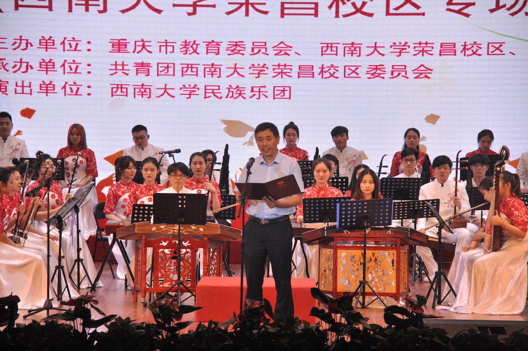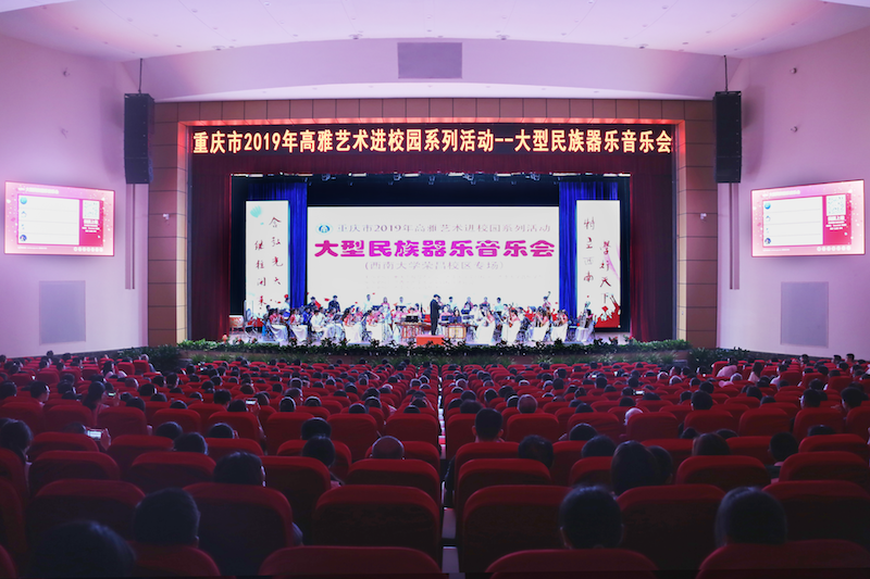 6月6日,由重庆市教育委员会、荣昌校区和学校音乐学院主办,荣昌校区团委承办,taptap点点官方网站民族乐团演出的高雅艺术进校园活动之大型民族器乐音乐会在荣昌校区新建活动中心上演。学校党委副书记潘洵、重庆市荣昌区文联、学校党办、校办、宣传部、学工部、团委、基建处、荣昌校区党工委、荣昌校区管委会、音乐学院、动物科学学院、商贸学院、荣昌校区基础部和荣昌校区有关职能部门负责人与1100余名师生共同观看了演出。